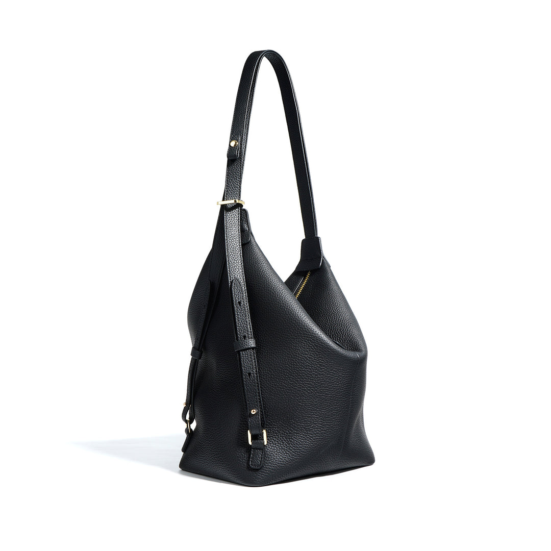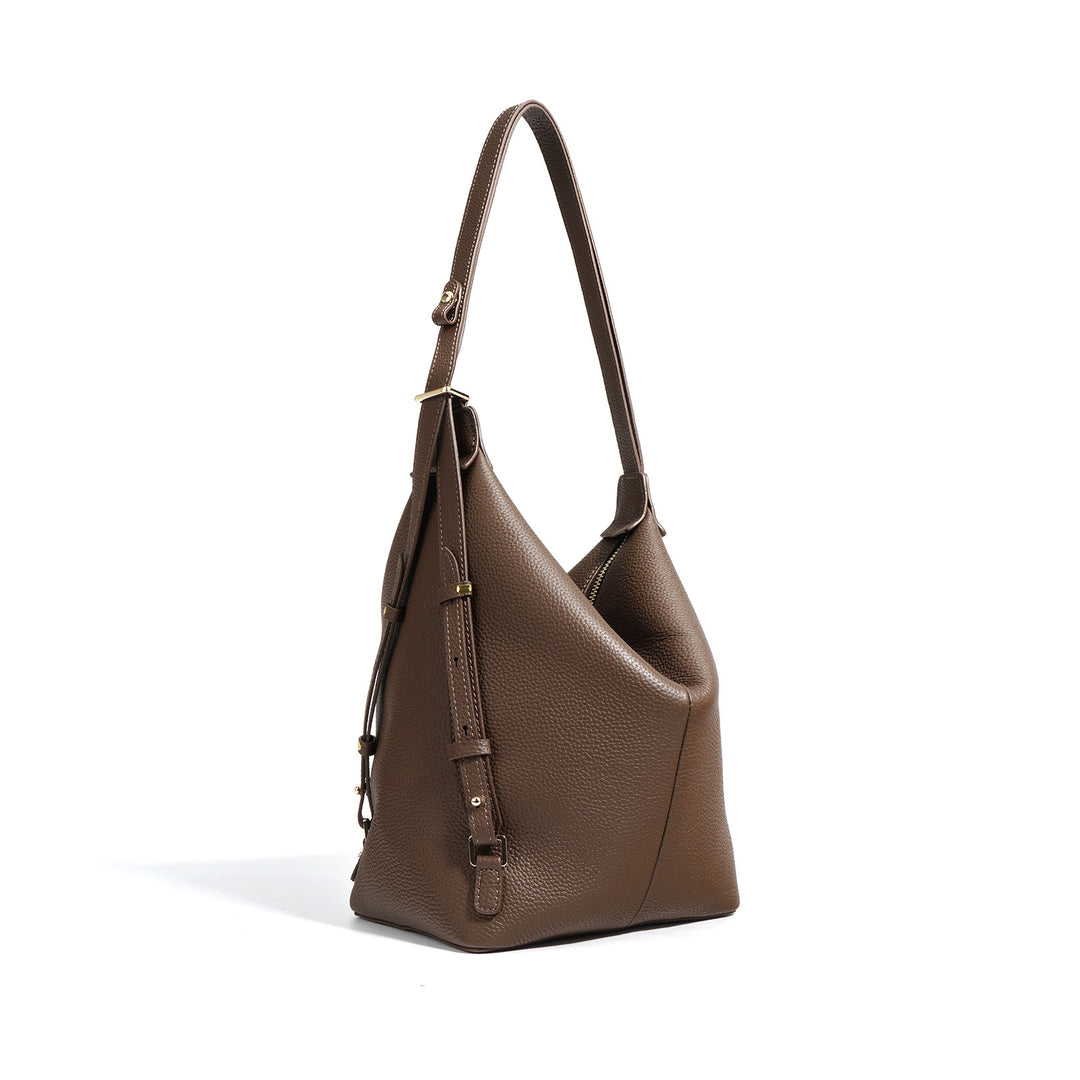 حقيبة كتف أنيقة ومنظمة، هذه الحقيبة الأساسية للاستخدام اليومي مصنوعة من جلد محبب بتصميم ناعم ومنحوت. تتميز بسحاب علوي وحزام قابل للتعديل وأجزاء معدنية ذهبية اللون لإطلالة أنيقة ومتعددة الاستخدامات.