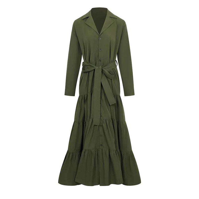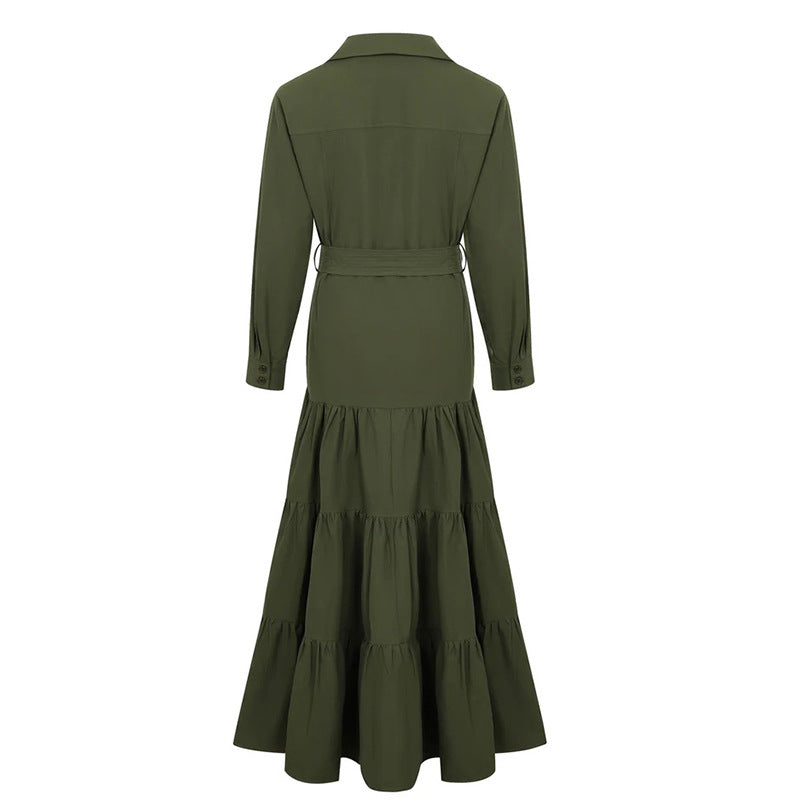 فستان قميص متعدد الطبقات بحزام وأكمام طويلة – ميكلا
