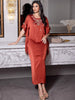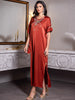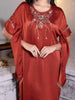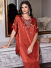 تألقي بهذا الفستان الساتان بأكمام قصيرة وقصة مريحة وياقة مزينة بتفاصيل لامعة. مثالي للحفلات المسائية والمناسبات الخاصة.