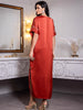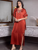 فستان ساتان بأكمام قصيرة ورقبة مزينة - زارازلو