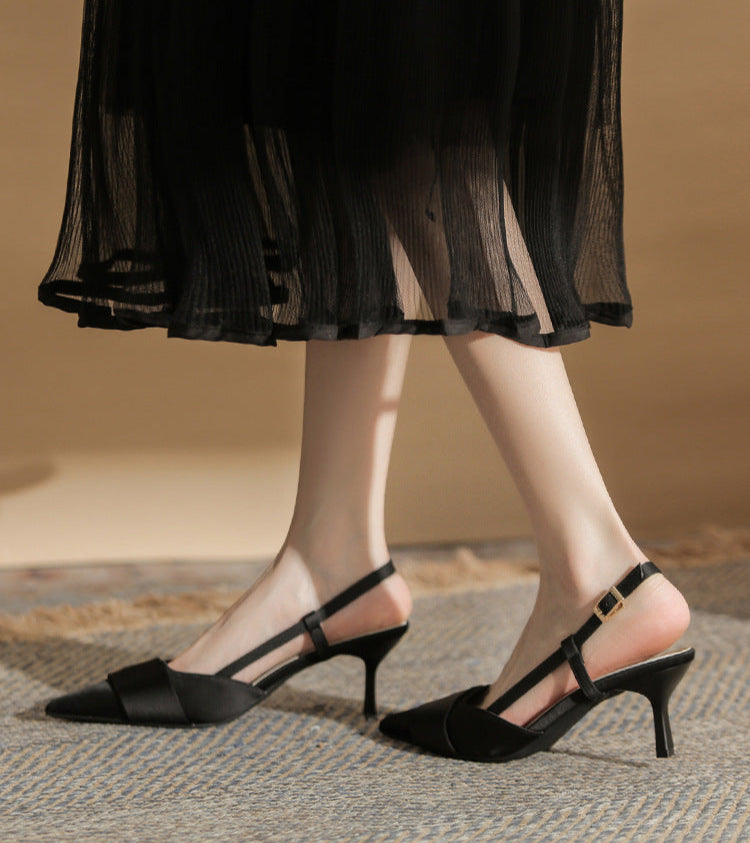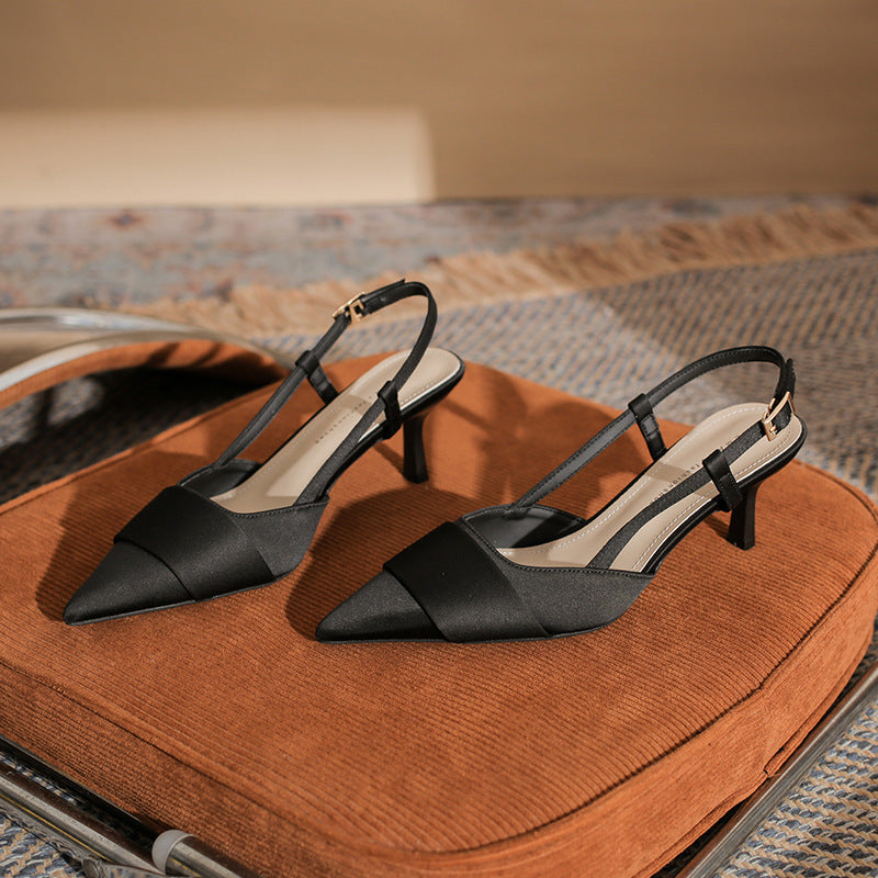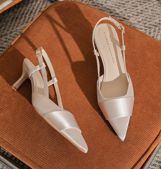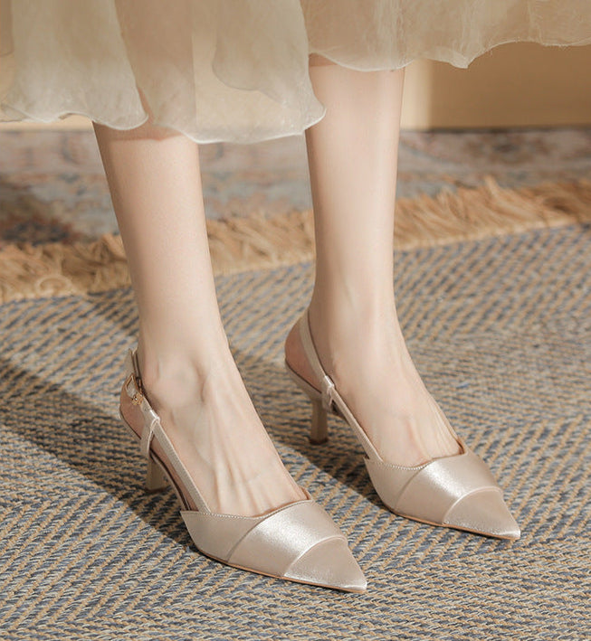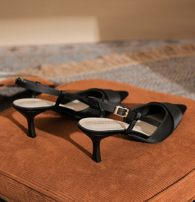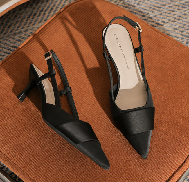 حذاء أنيق بكعب عالٍ مفتوح من الخلف، بمقدمة مدببة أنيقة وحزام ساتان متقاطع. يتميز بكعب ستيليتو متوسط الارتفاع، ليمنحكِ لمسة نهائية راقية. مادة الساتان المقاس الأمريكي 34 35 36 37 38 39 المقاس الصيني 220 225 230 235 240 245 طول القدم (مم) 216–220 221–225 226–230 231–235 236–240 241–245 عرض القدم (مم) 80 80–85 85 85–90 90 90–95