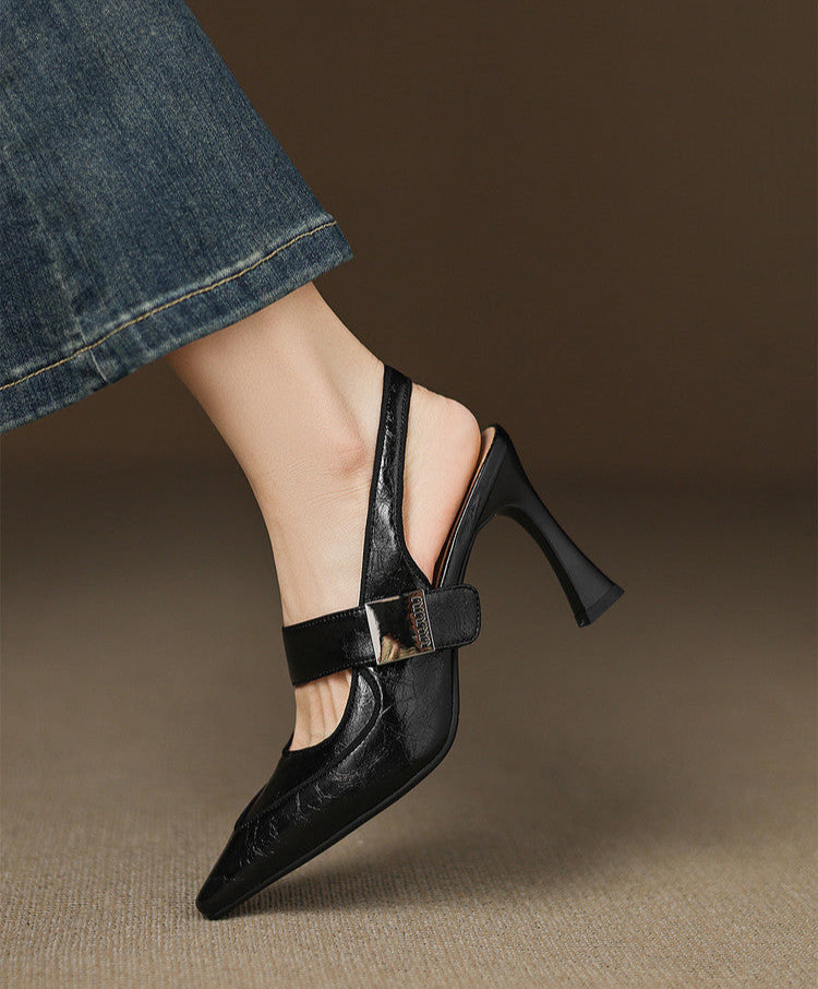 حذاء بكعب أنيق مفتوح من الخلف بمقدمة مدببة، مزين بحزام معدني جريء. بكعب عالٍ عصري، يضفي لمسة أنيقة وعصرية على أي إطلالة. المادة جلد البقر المشقوق (باستثناء جلد البقر المدبوغ) المقاس 34 35 36 37 38 39 40 طول الحذاء (سم) 22 22.5 23 23.5 24 24.5 25 عرض القدم/الكف (سم) 7 7.2 7.6 8 8.4 8.8 9