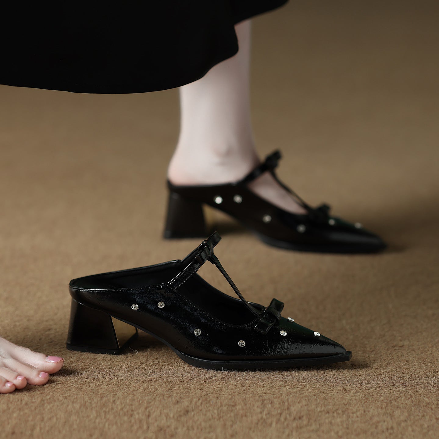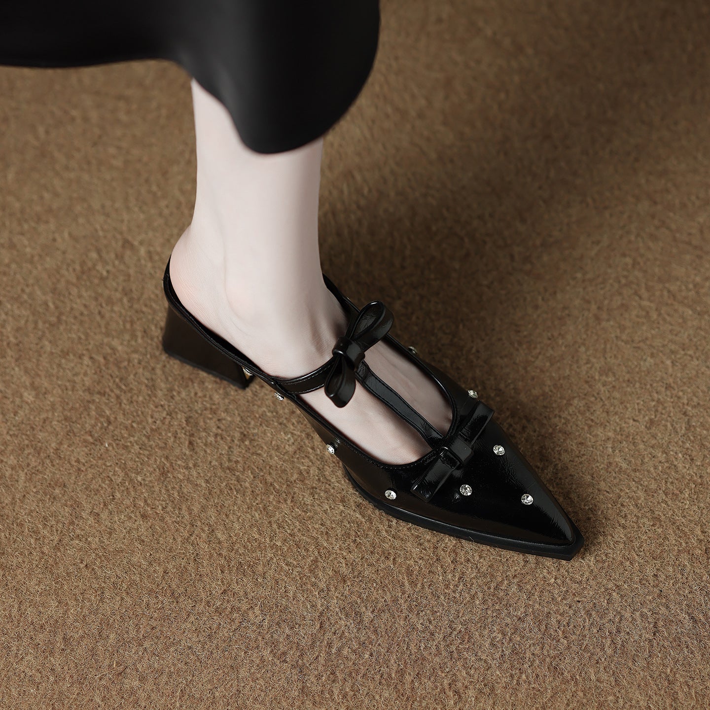 حذاء ميول أنيق بمقدمة مدببة وحزام أنيق على شكل فيونكة، مزين بأحجار لامعة. مصمم بكعب متوسط الارتفاع لإطلالة أنيقة ومريحة. مادة النعل: المطاط المقاس 34 35 36 37 38 39 طول القدم (مم) 220 225 230 235 240 245 عرض القدم (مم) 81–84 83–86 84–87 85–88 86–89 88–91 محيط القدم (مم) 214 218 222 225 229 233