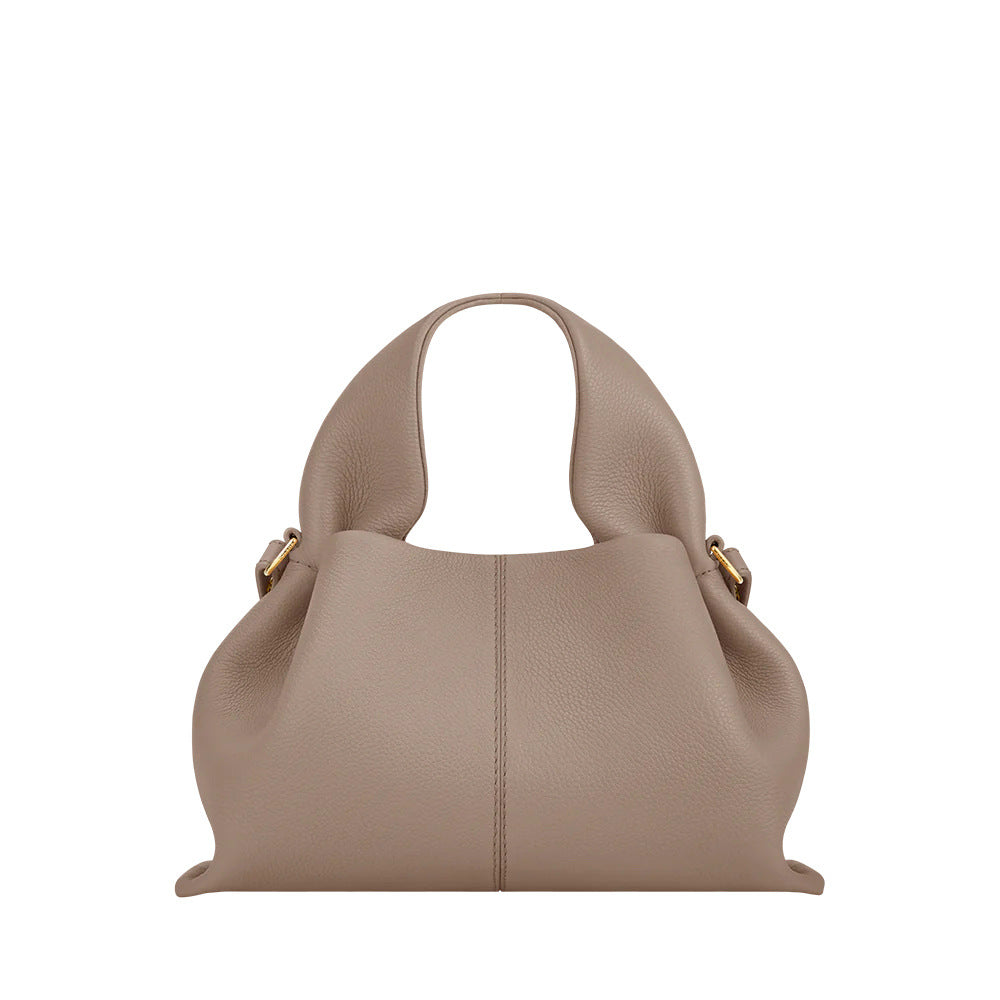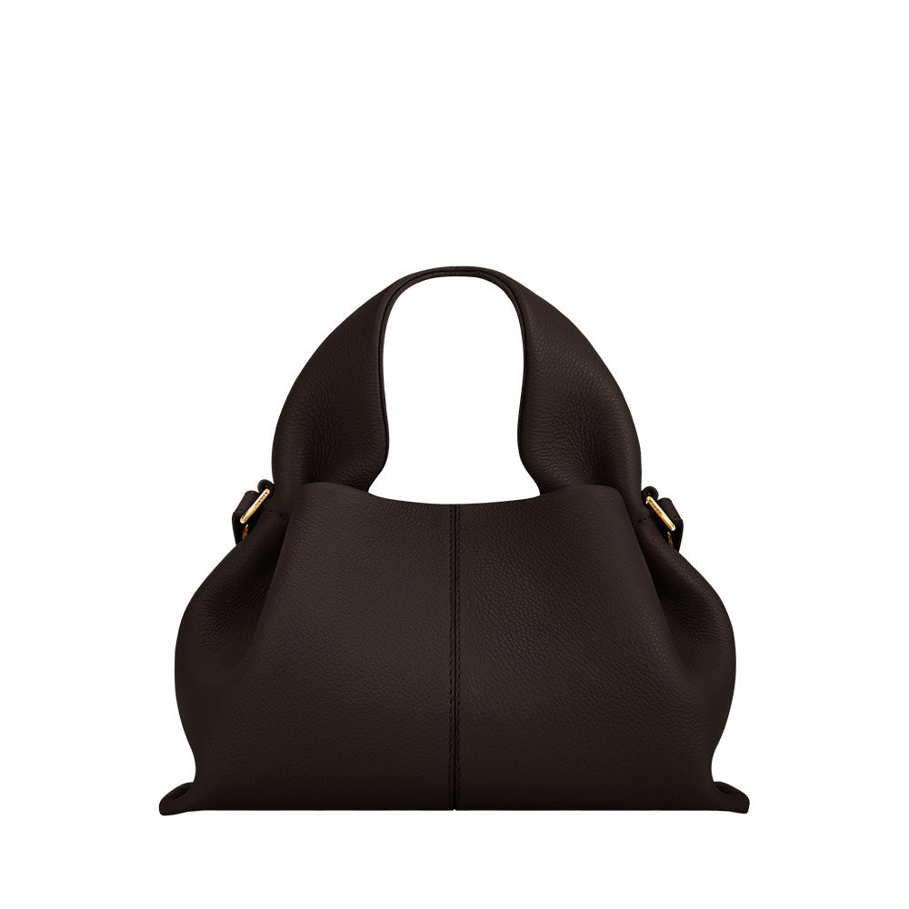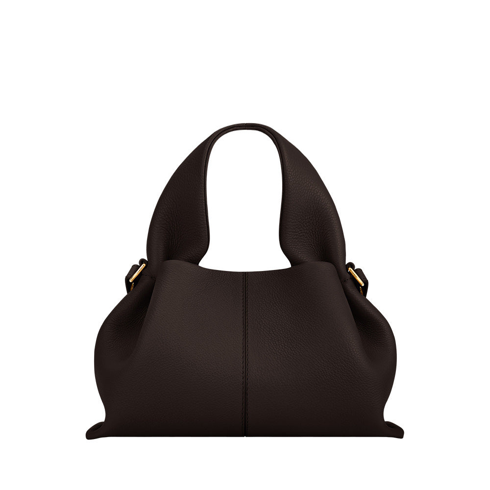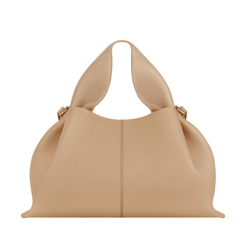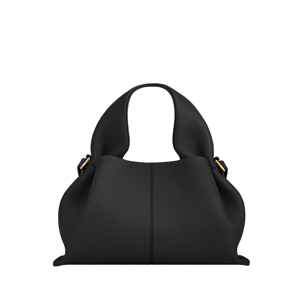 حقيبة هوبو بسيطة مصنوعة من جلد ناعم بمقبض منحوت قابل للطي وتفاصيل ذهبية رقيقة. قطعة أساسية راقية تجمع بين الأناقة والراحة.