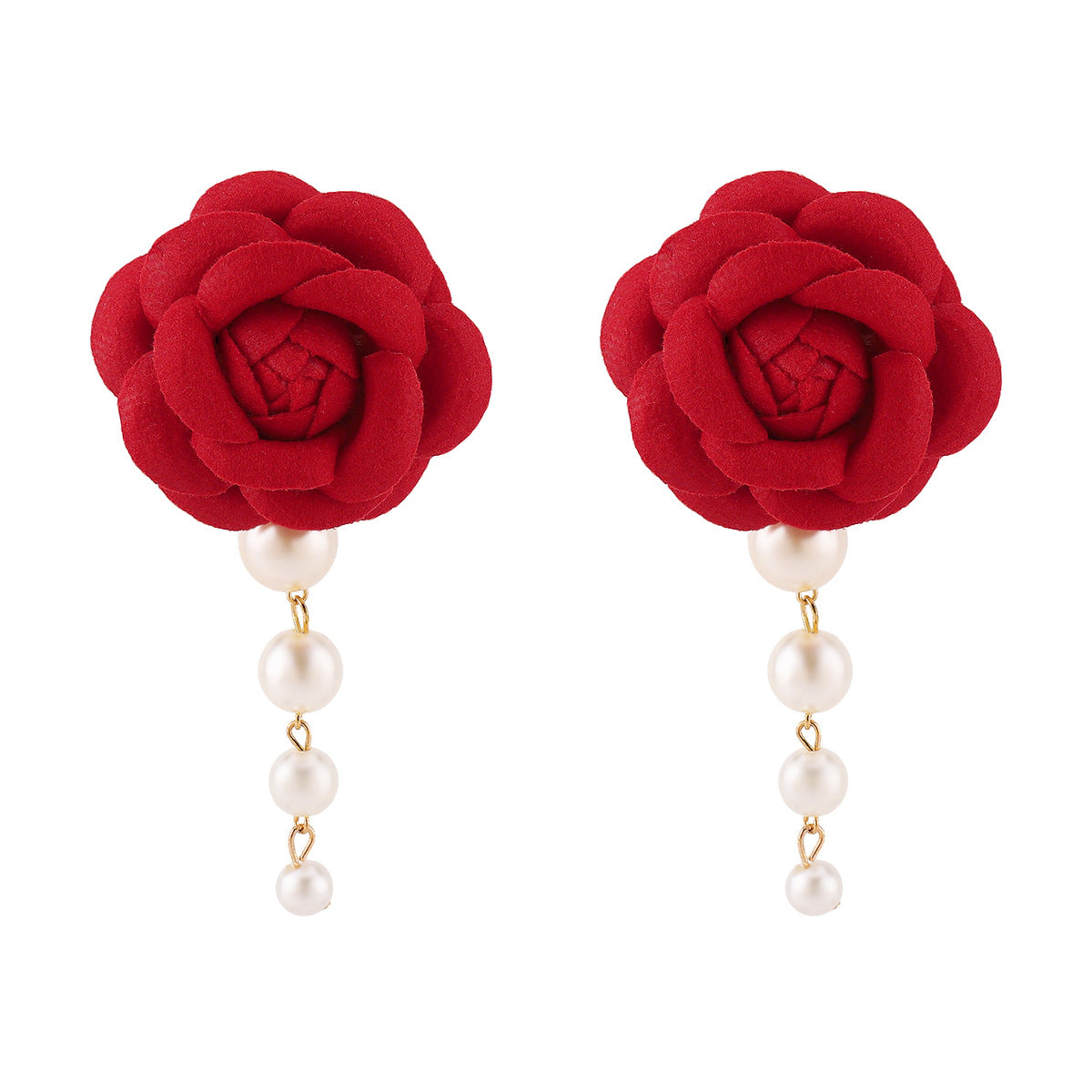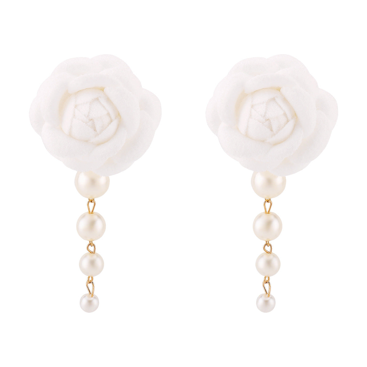 أقراط زهرة من القماش مع دلاية من اللؤلؤ - كاميليا