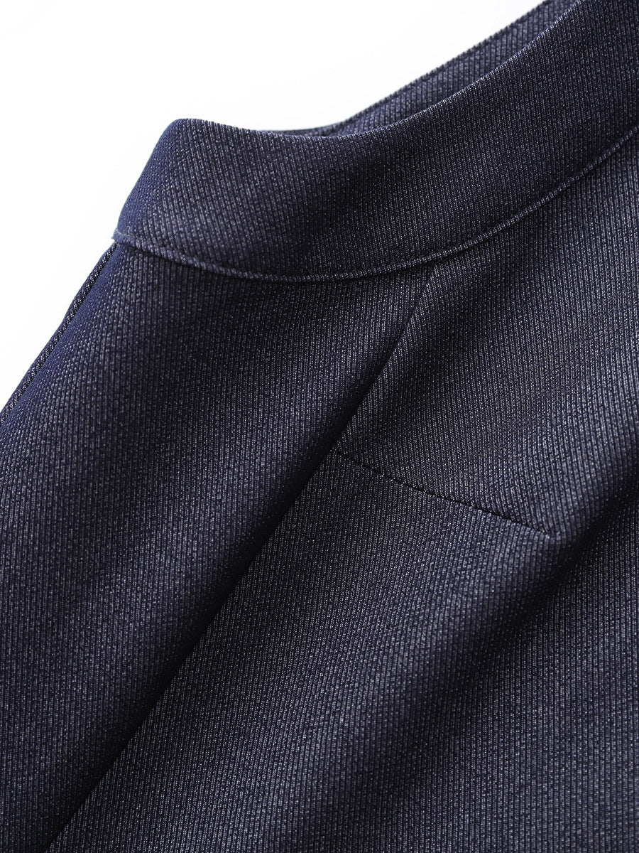 فستان ميدي كلاسيكي بدون أكمام مصنوع من قماش الدنيم الداكن المنظم يتميز بصدرية ملائمة وقصة ضيقة للحصول على مظهر جذاب.