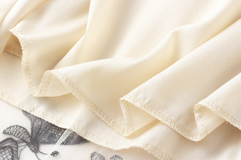تنورة ميدي أنيقة من التول، مزينة بتطريزات فراشات رقيقة بدرجات اللون الأحمر الغني. مصممة بقصة انسيابية ناعمة وبطانة داخلية خفيفة لحركة أنيقة، مثالية للارتقاء بالأناقة اليومية أو للمناسبات الخاصة.