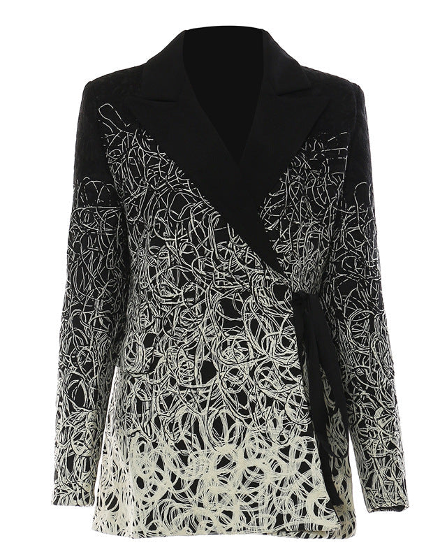سترة مصممة خصيصاً بتطريز دقيق بخيوط متداخلة، بتصميم متدرج الألوان، مع إغلاق أمامي ملفوف. مزيج جريء من التفاصيل الفنية والأناقة الراقية. اسم القماش: قطن المقاس الطول (سم) الكتف (سم) الصدر (سم) طول الكم (سم) S 71 39 102 62 M 72 40 106 63 L 73 41 108 64