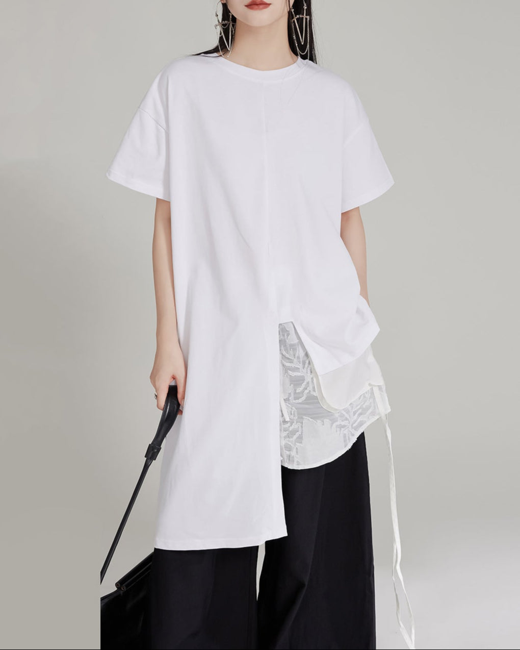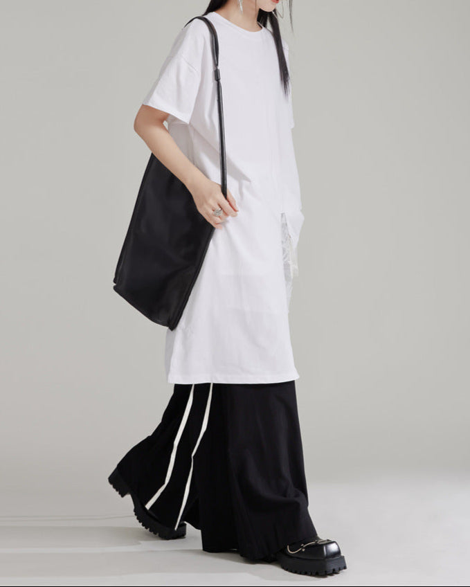 بسهولة نحتية، يتميز هذا الكيس المنسوج بالأبيض والأسود بخطوط منحنية، ومقابض علوية هيكلية، وأنابيب سوداء أنيقة. رفيق خفيف الوزن ولكنه جريء لاحتياجاتك اليومية.
