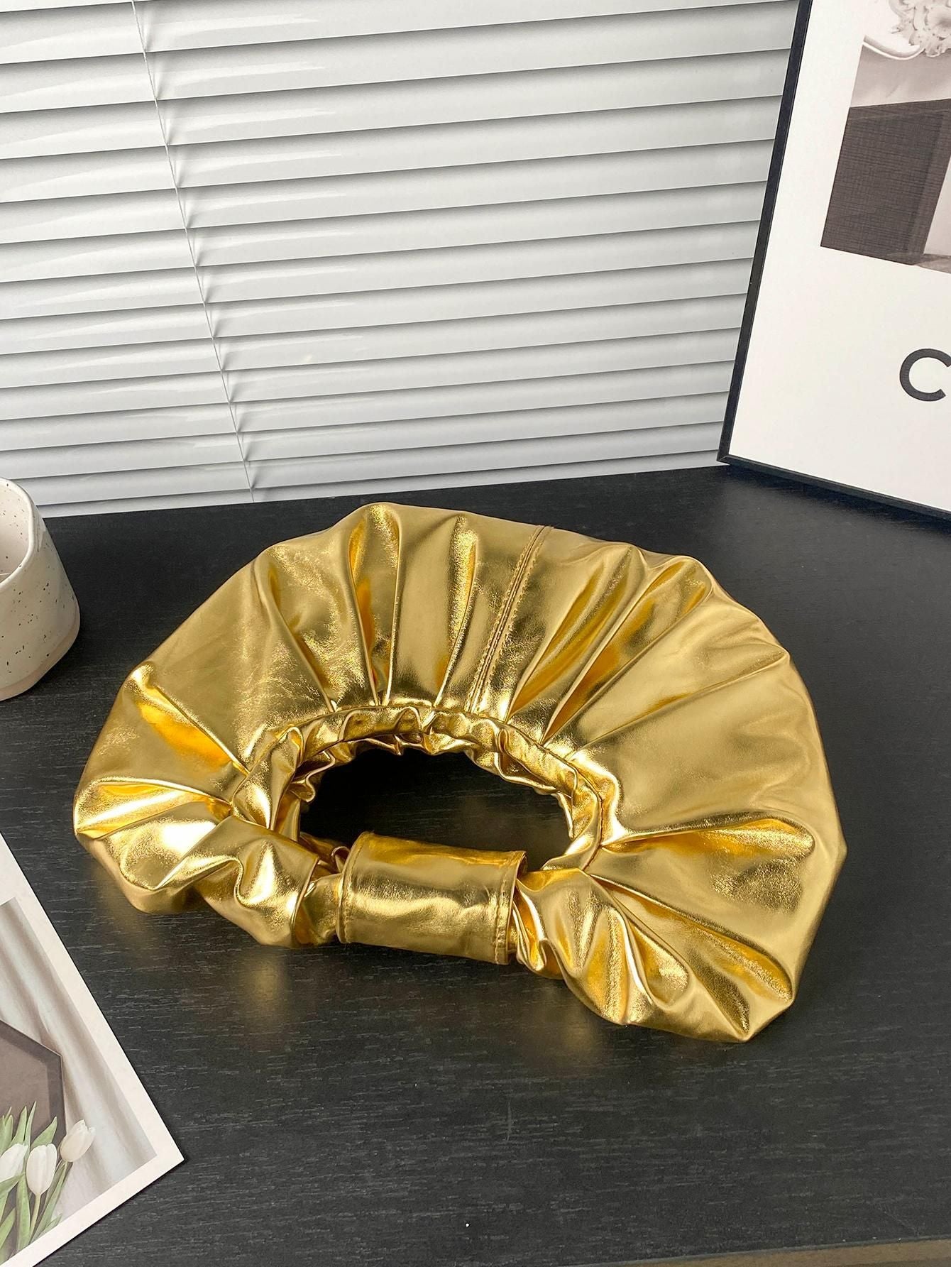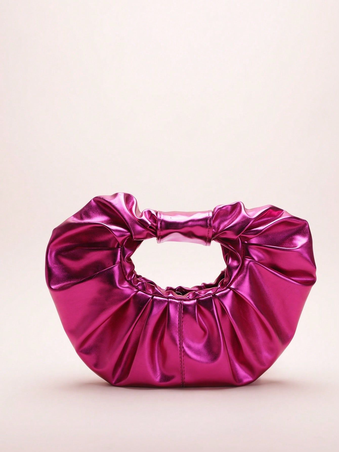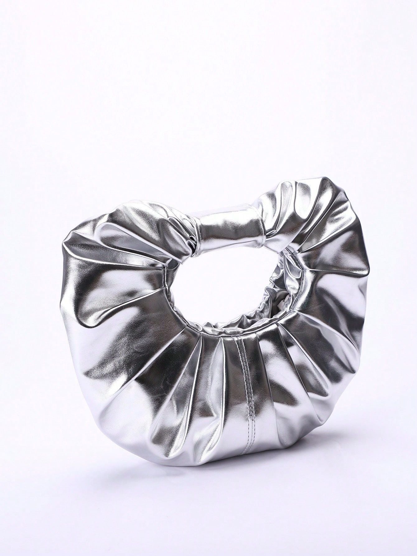 قطعة جريئة ومميزة بتصميم دائري منحوت ومقبض مكشكش بلمسة نهائية معدنية لامعة. مثالية لإطلالات أنيقة بلمسة عصرية ولمعان نابض بالحياة.