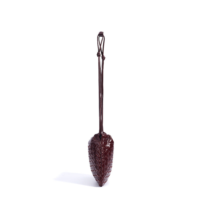 مصنوعة من جلد بلون أرجواني داكن بلمسة نهائية منسوجة أنيقة، تتميز هذه الحقيبة المتقاطعة بجزء علوي مكشكش ناعم وحزام رفيع قابل للتعديل. تصميم غني بنسيج فريد لإطلالة أنيقة من النهار إلى الليل.