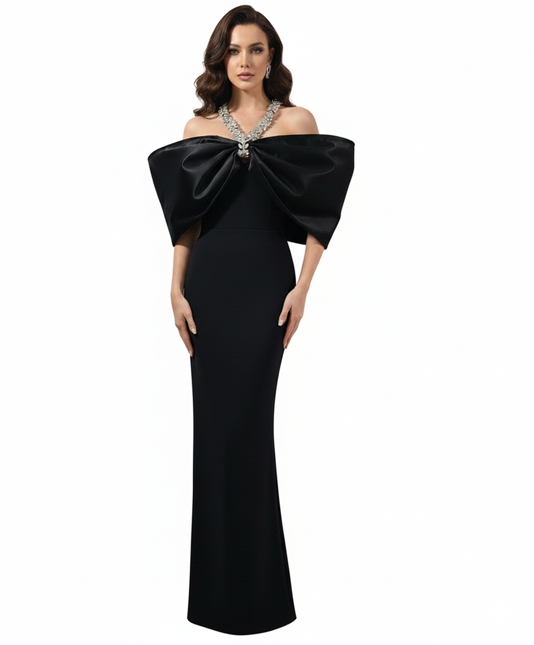 Make a striking entrance in this elegant fuchsia evening gown, designed with a sleek column silhouette that elongates the figure. Featuring a dramatic sculpted cape detail and a sparkling crystal halter neckline, this gown balances bold structure with refined glamour. The fitted bodice enhances the waist, while the smooth floor-length skirt creates a timeless, sophisticated finish—perfect for galas, formal events, and special occasions.