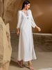 Shine bright in your evening look with this maxi dress, designed with elegant side pleats and a flowing cut. Perfect for combining timeless simplicity with modern sophistication.