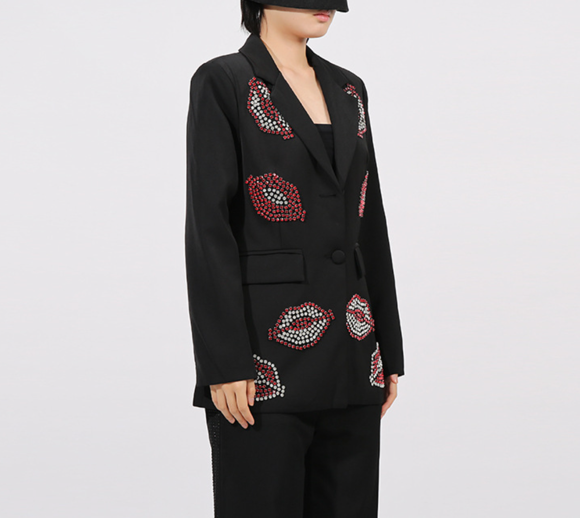 embellished tailored blazer with crystal lip motifs – ROUGE – missodd.com