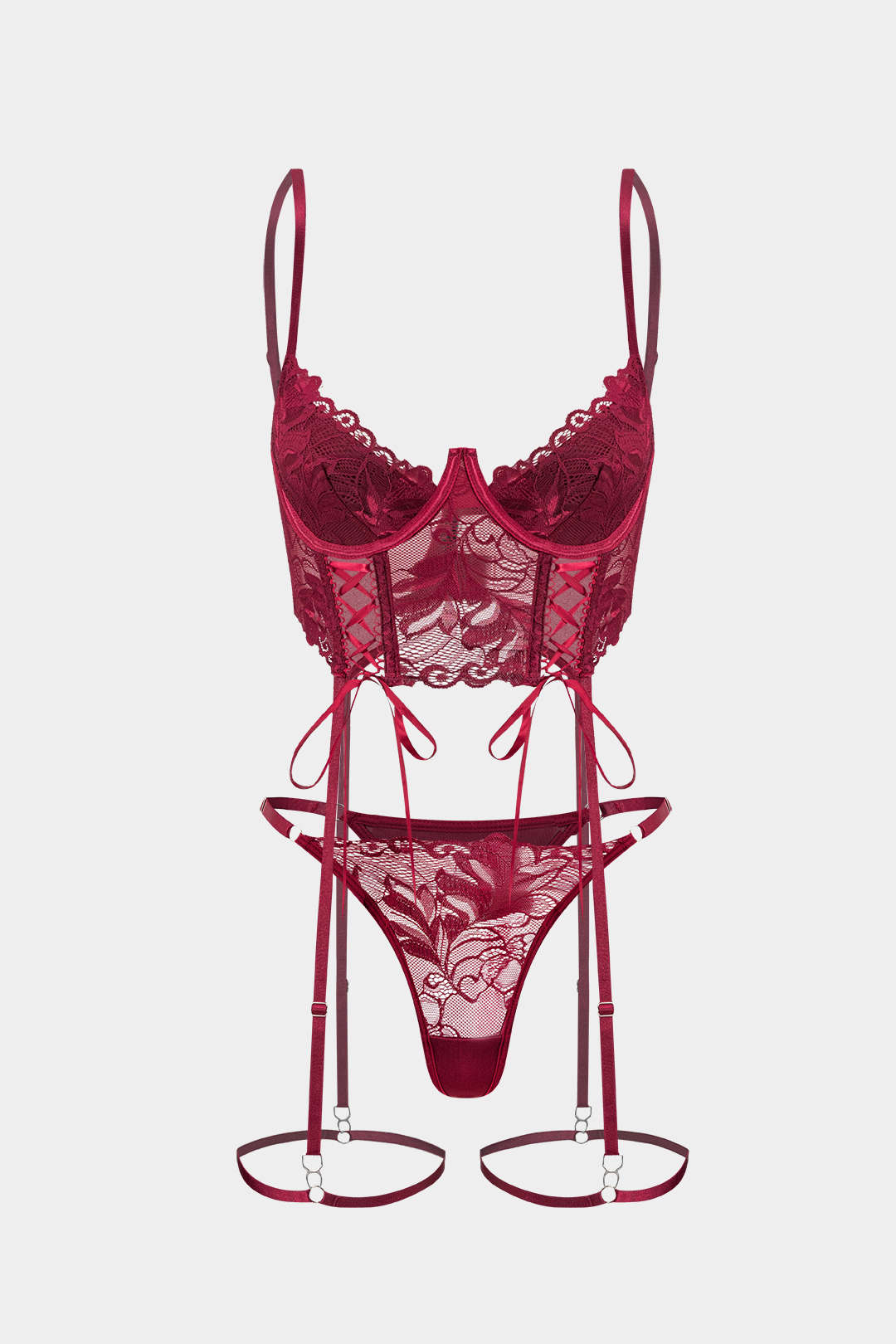 Lace Crossed Tie-Up Slip Lingerie Garter Set