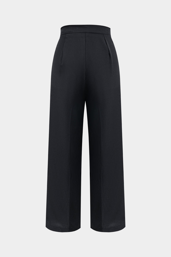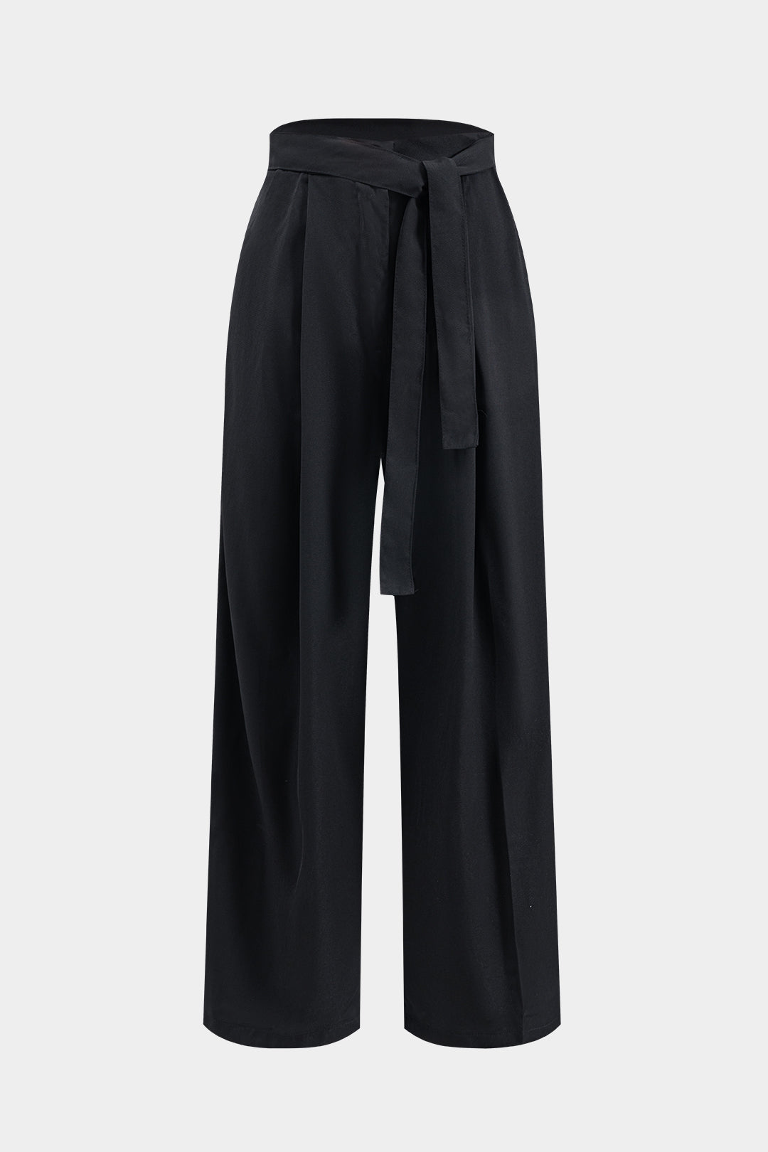 Pleated Tie Front Wide Leg Trousers
