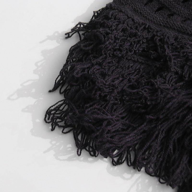 A chic openwork crochet jacket featuring delicate fringe trims and button closure. Lightweight yet textured, perfect for adding a touch of effortless elegance to any look.