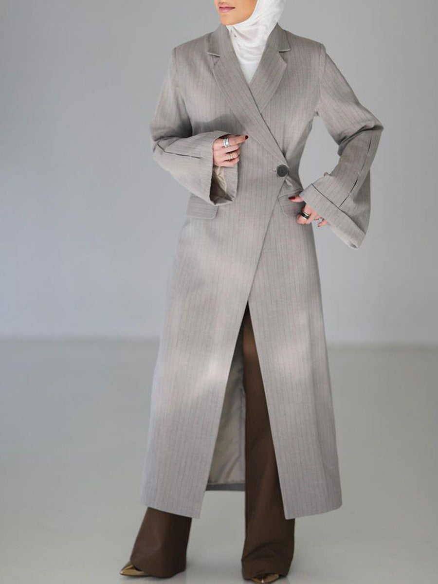 Plissiertes Oberteil mit ausgestellten Ärmeln und Maxirock-Set mit Taillengürtel – Rosiny