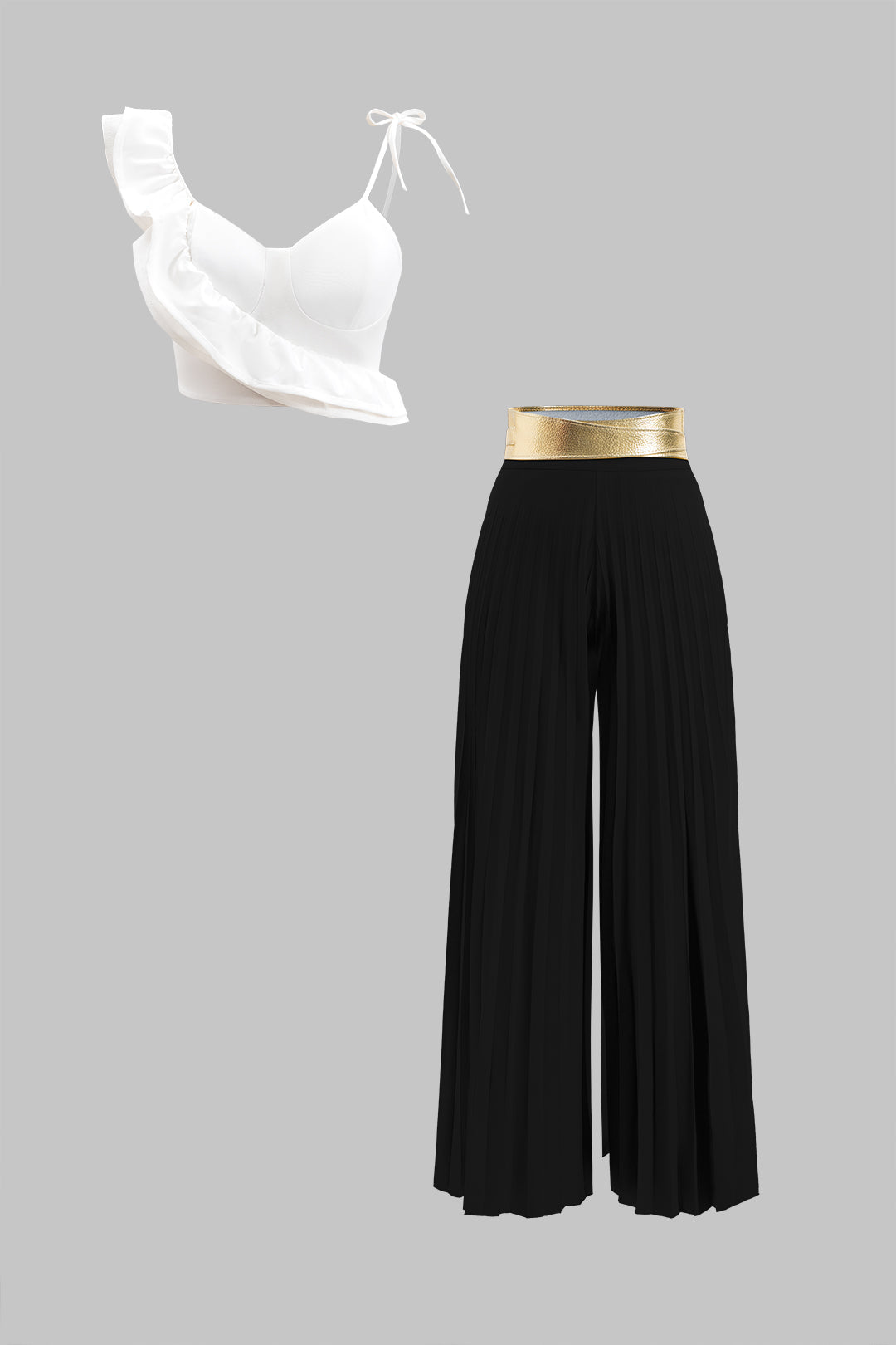 Ruffle Cami Top And Pleated Trousers Set