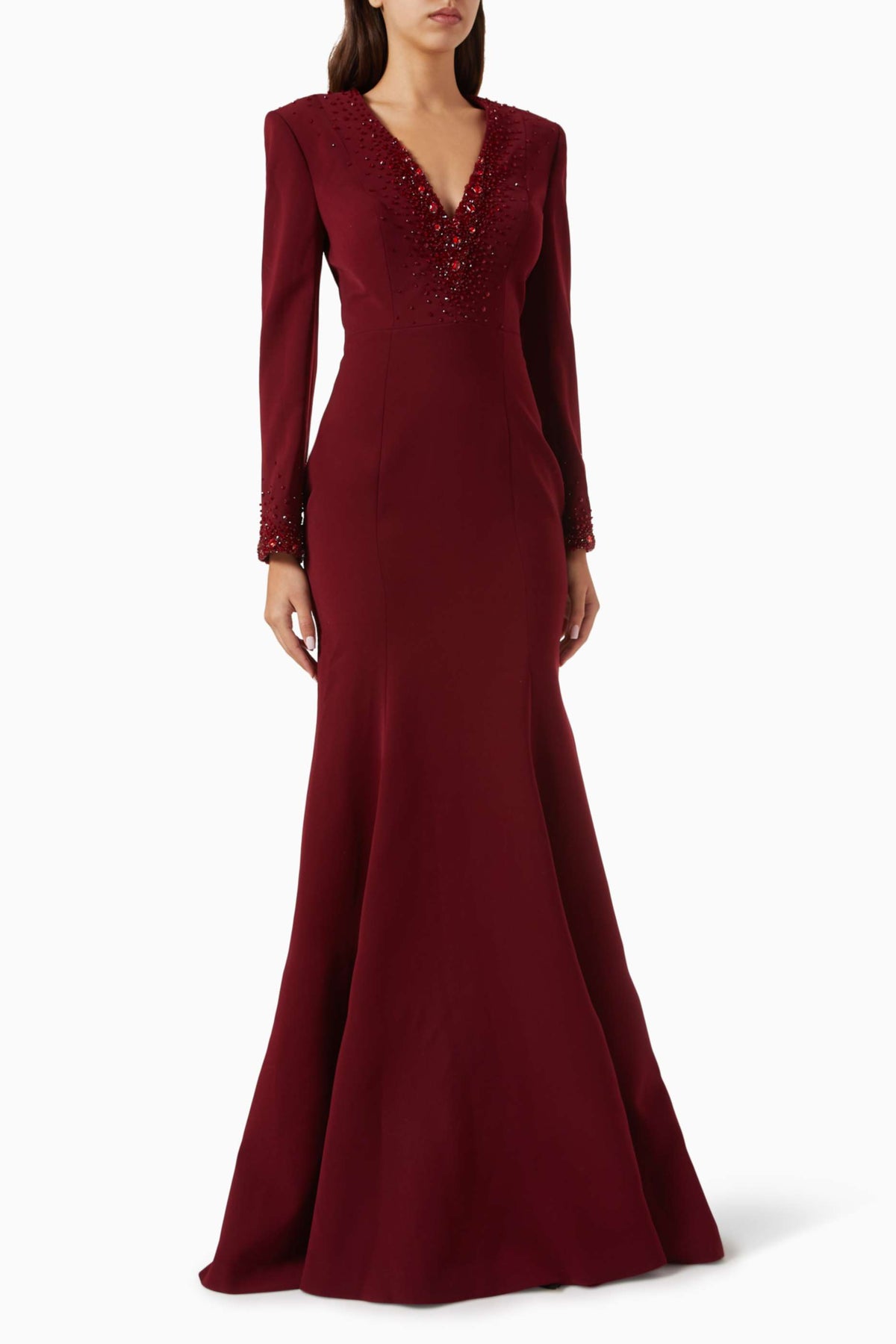 Embellished V-neck mermaid gown – SCARLETTA – missodd.com