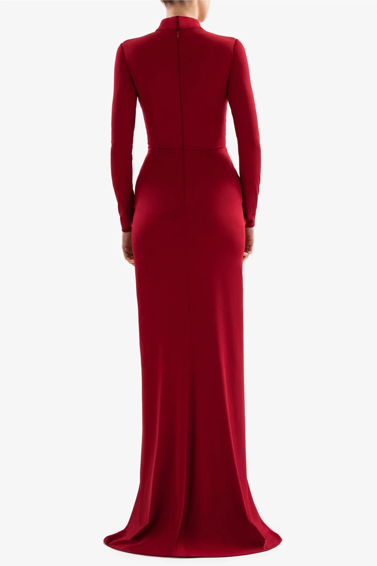 long-sleeve gown with ruched cutout bodice – RAVEN
