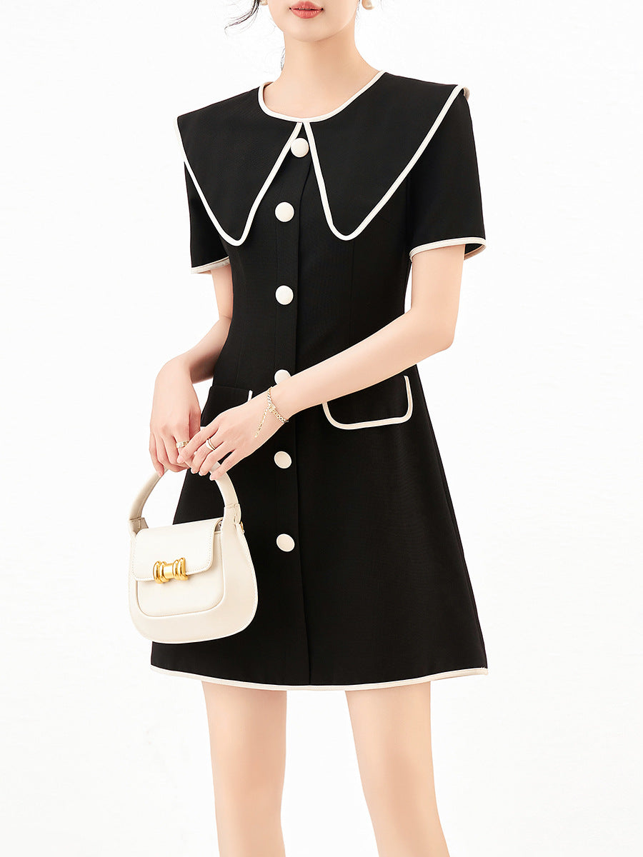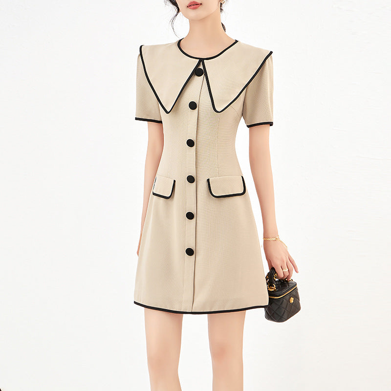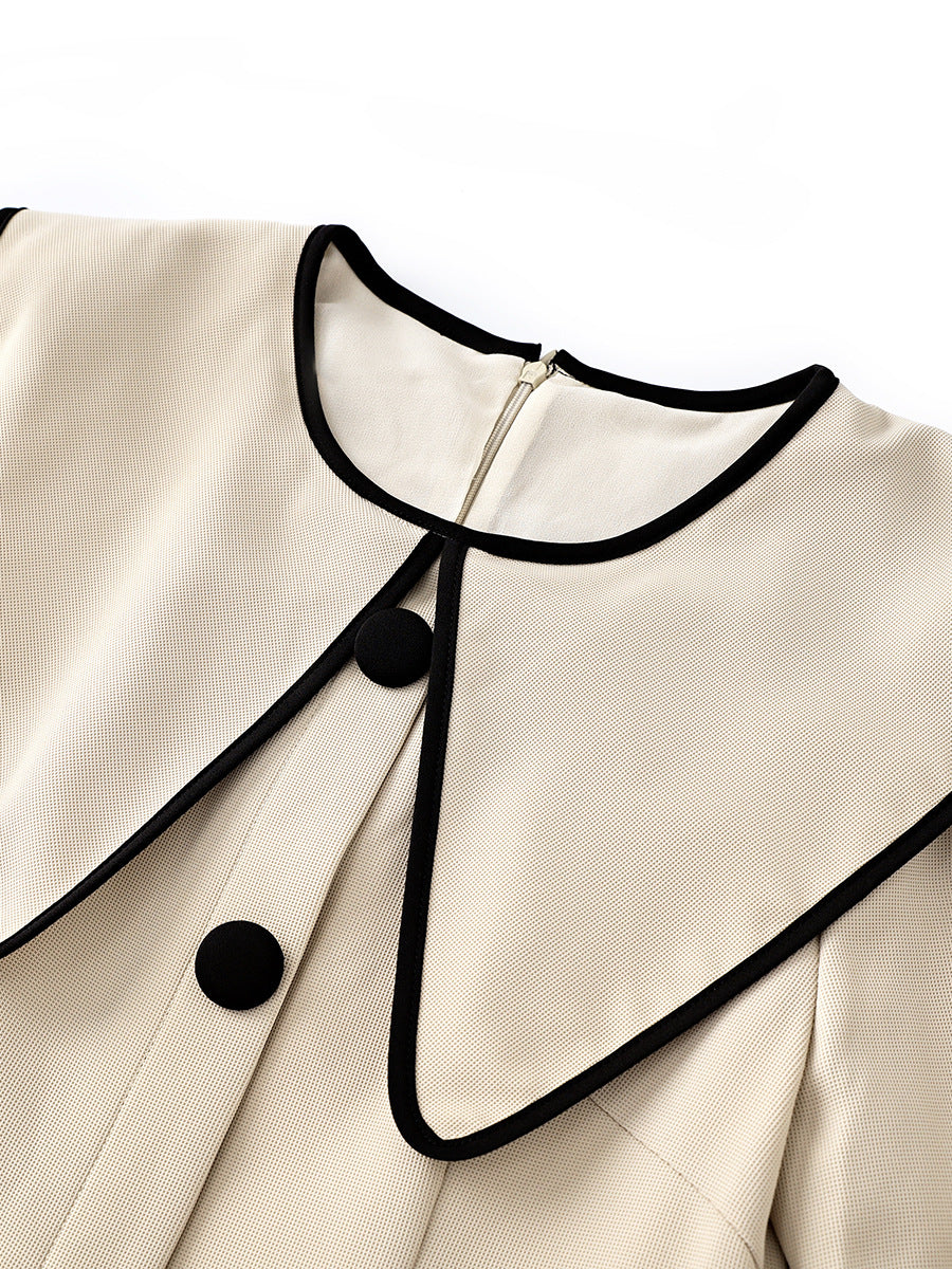 Ein raffiniertes marineblaues Samtkleid in Midi-Länge mit einem drapierten Paillettenoberteil und einem maßgeschneiderten Reverskragen. Mit dreiviertel Ärmeln und einer strukturierten Silhouette balanciert dieses Stück klassischen Charme mit modernem Glamour—perfekt für Cocktailabende und elegante Anlässe.