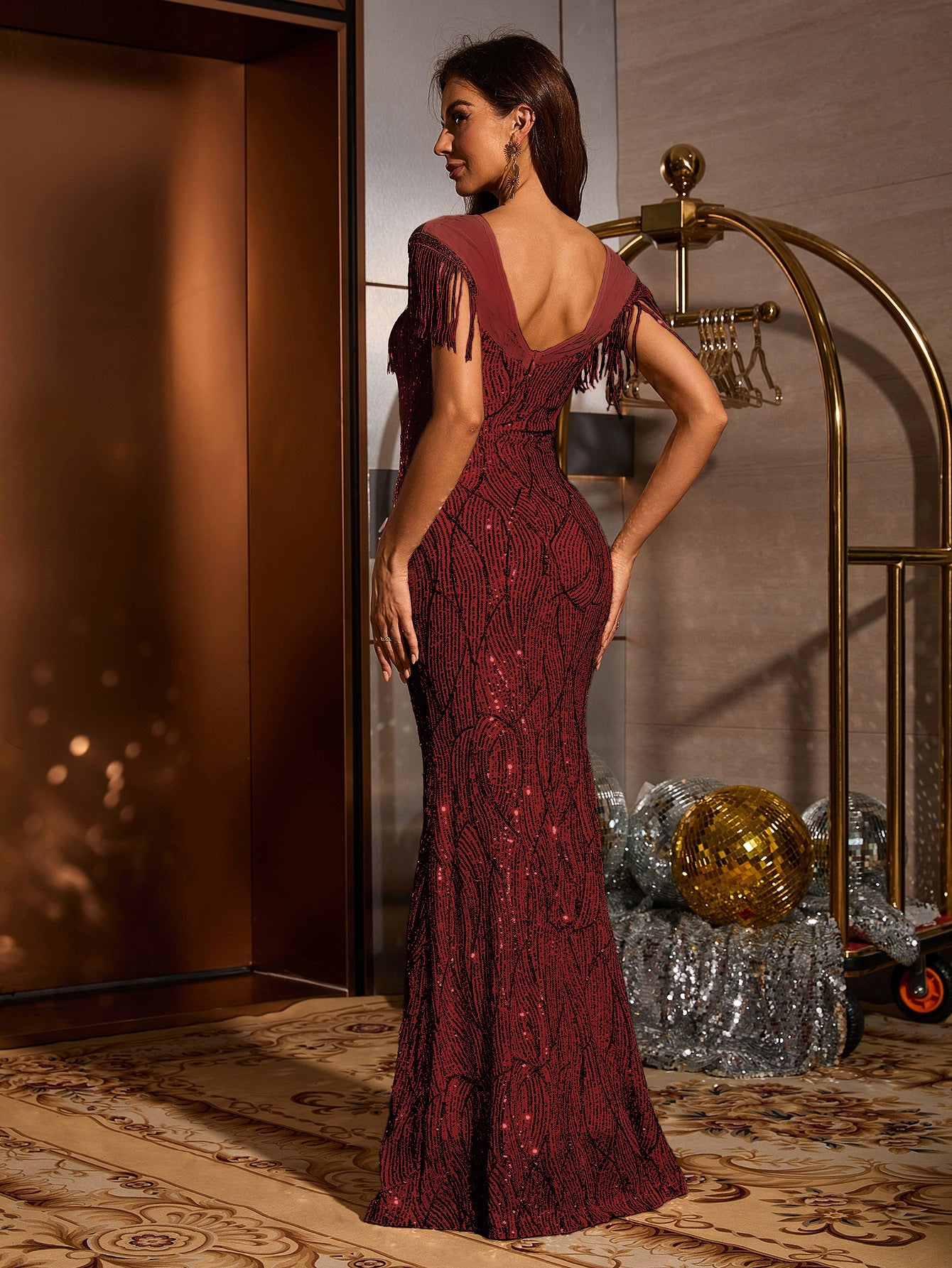 Plissiertes Oberteil mit ausgestellten Ärmeln und Maxirock-Set mit Taillengürtel – Rosiny
