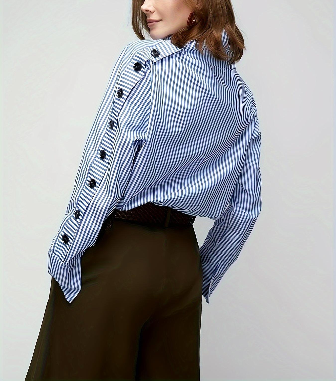 striped high-neck blouse with buttoned sleeves – ELENA – missodd.com
