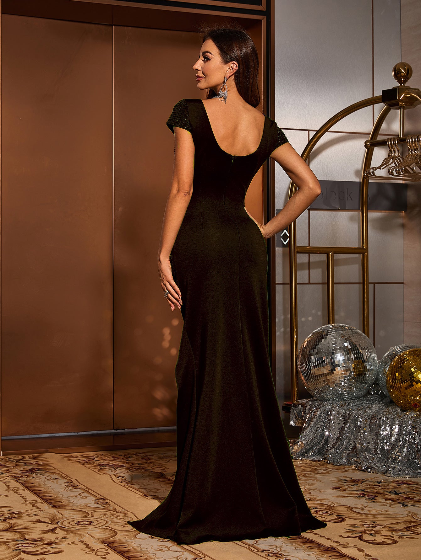 Plissiertes Oberteil mit ausgestellten Ärmeln und Maxirock-Set mit Taillengürtel – Rosiny