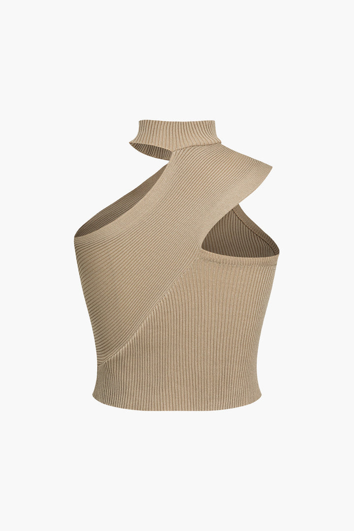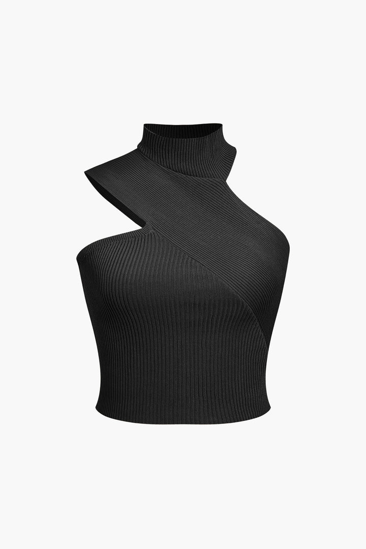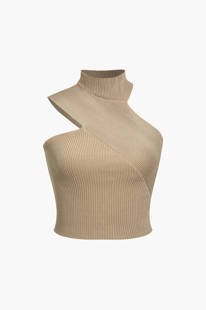 Solid Knit Asymmetrical Mock Neck Tank Top