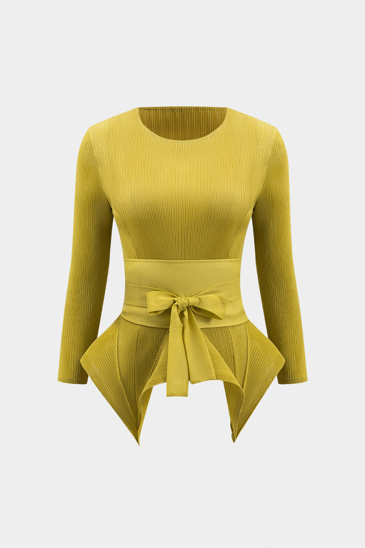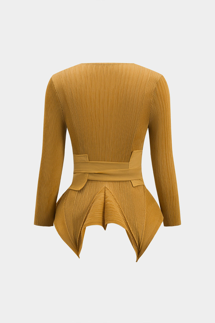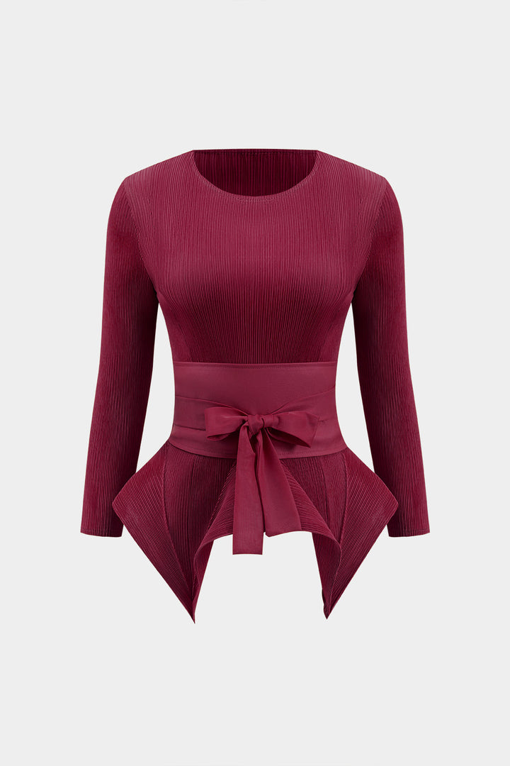 Tie Front Long Sleeve Top And Pleated Skirt Set