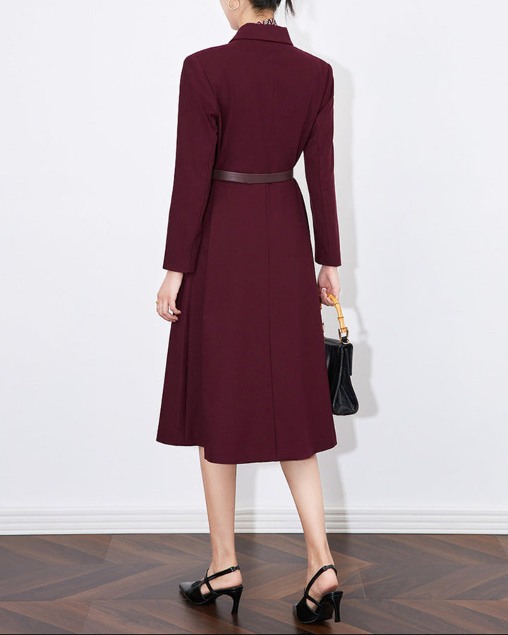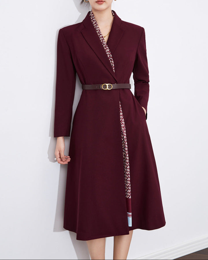 Ein raffiniertes marineblaues Samtkleid in Midi-Länge mit einem drapierten Paillettenoberteil und einem maßgeschneiderten Reverskragen. Mit dreiviertel Ärmeln und einer strukturierten Silhouette balanciert dieses Stück klassischen Charme mit modernem Glamour—perfekt für Cocktailabende und elegante Anlässe.