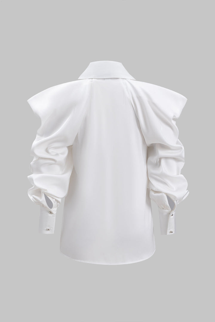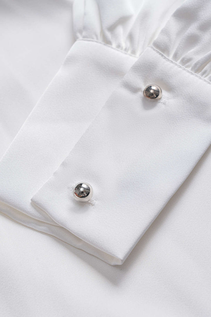 Satin Button Tie Long-Sleeve Shirt With Tie