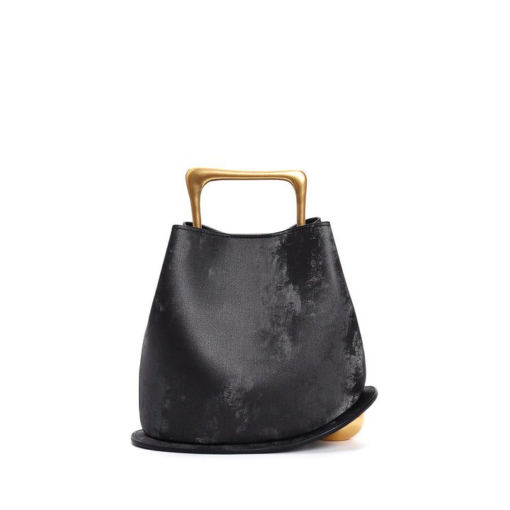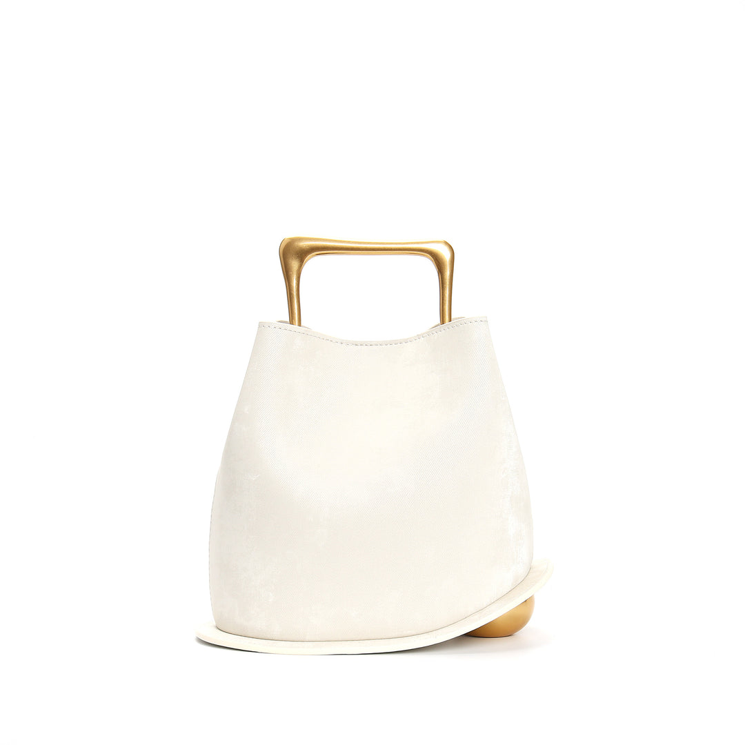 Mühelos skulptural, diese schwarz-weiße gewebte Tasche verfügt über eine geschwungene Silhouette, strukturierte obere Griffe und elegante schwarze Paspeln. Ein leichter, aber auffälliger Begleiter für Ihre täglichen Essentials.