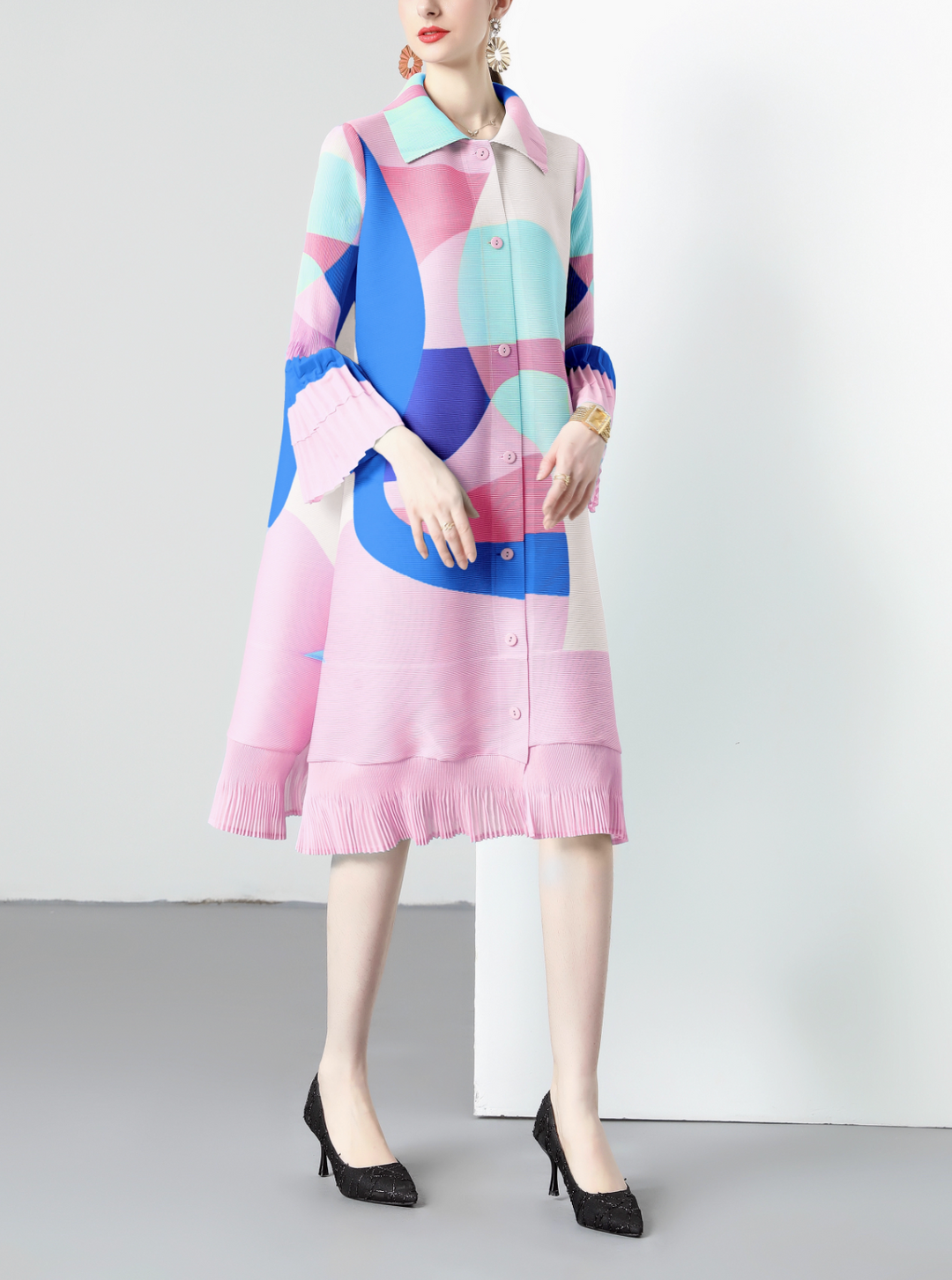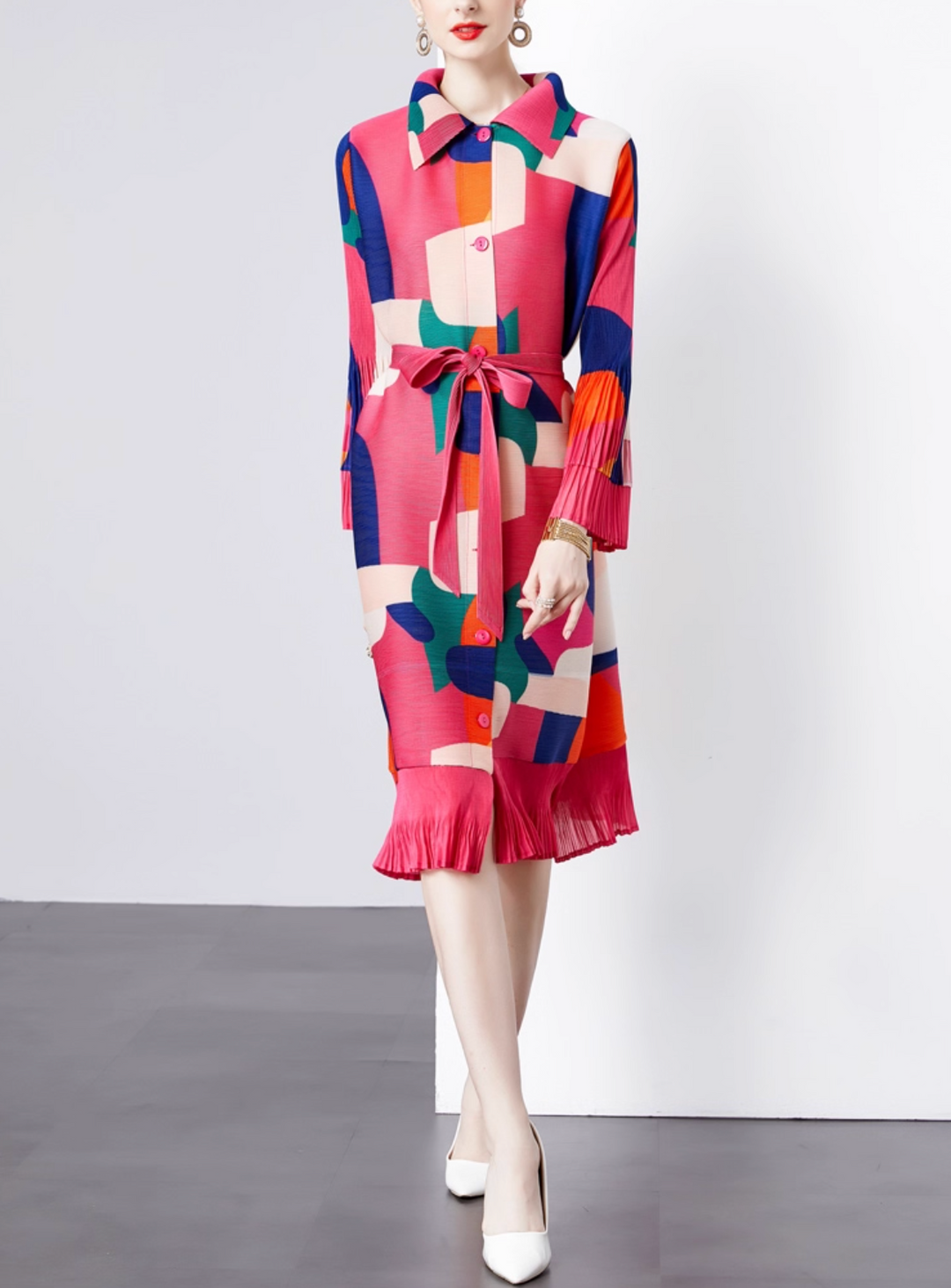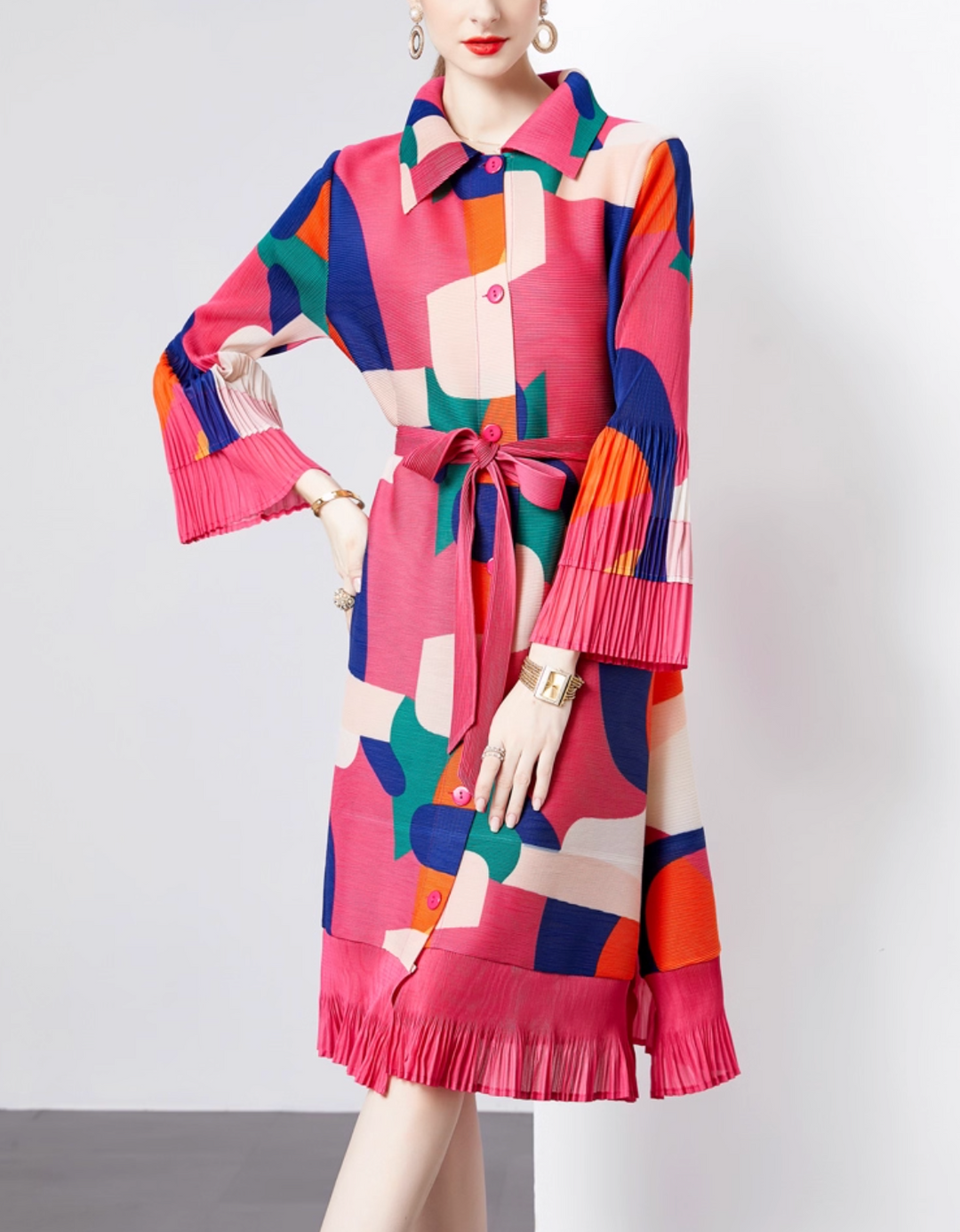 Ärmelloses ausgestelltes Midikleid mit Kettengürtel - CELIAV