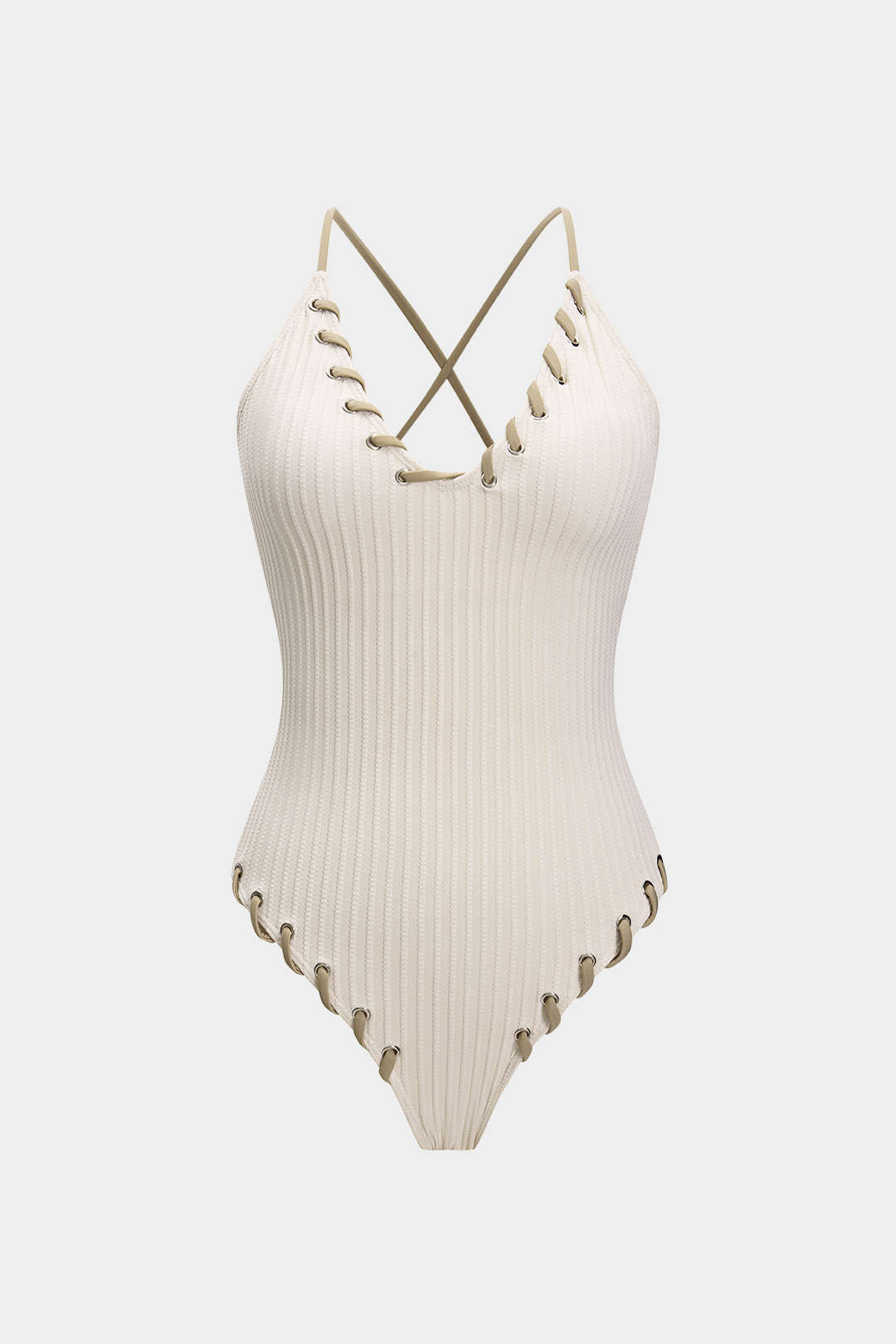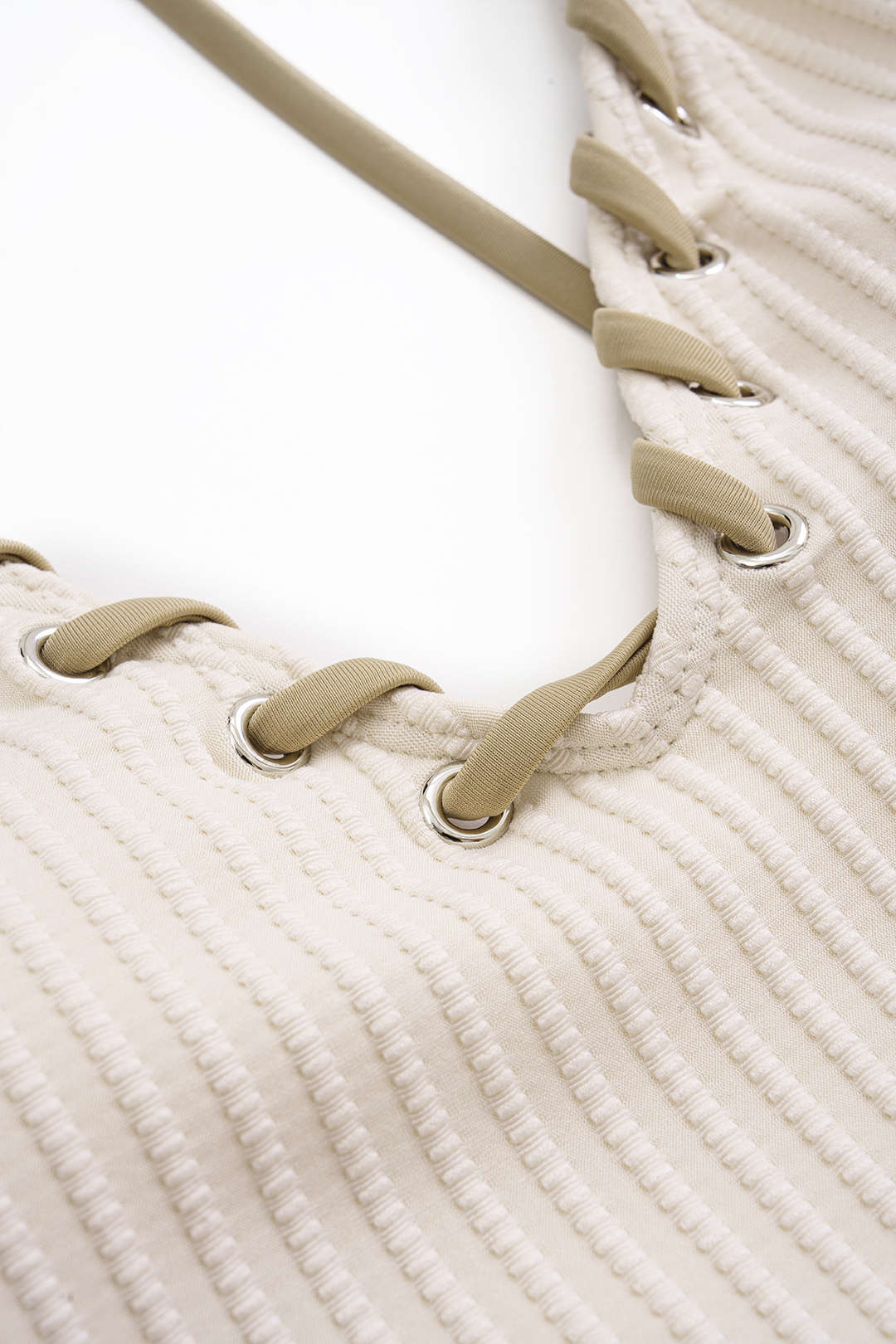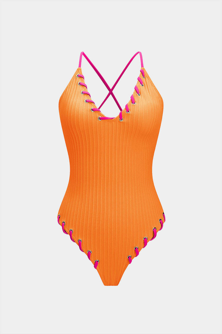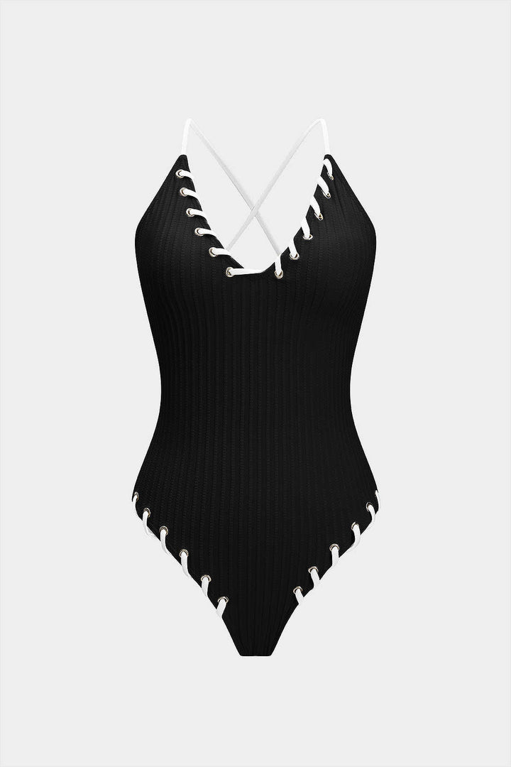 Contrast Whipstitching Tie Back Sleeveless Slip Bodysuit