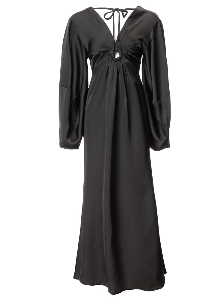 long sleeve ruched satin dress with keyhole front - MELROSE