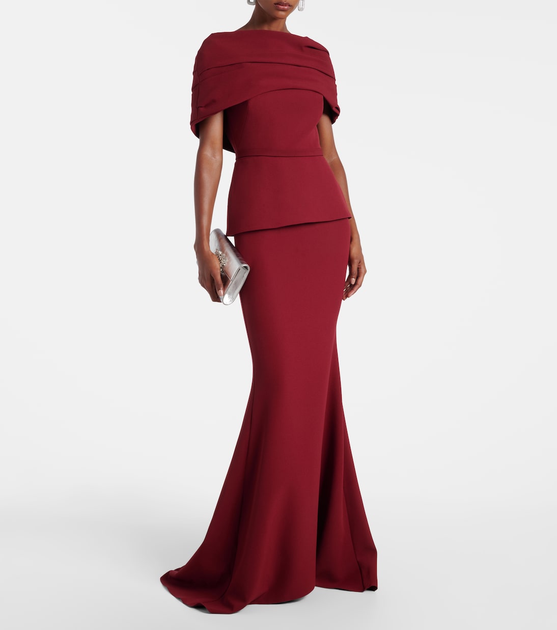 Off-shoulder layered mermaid gown – GARNET