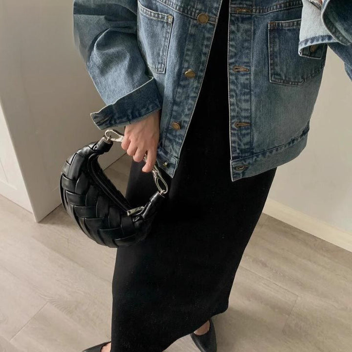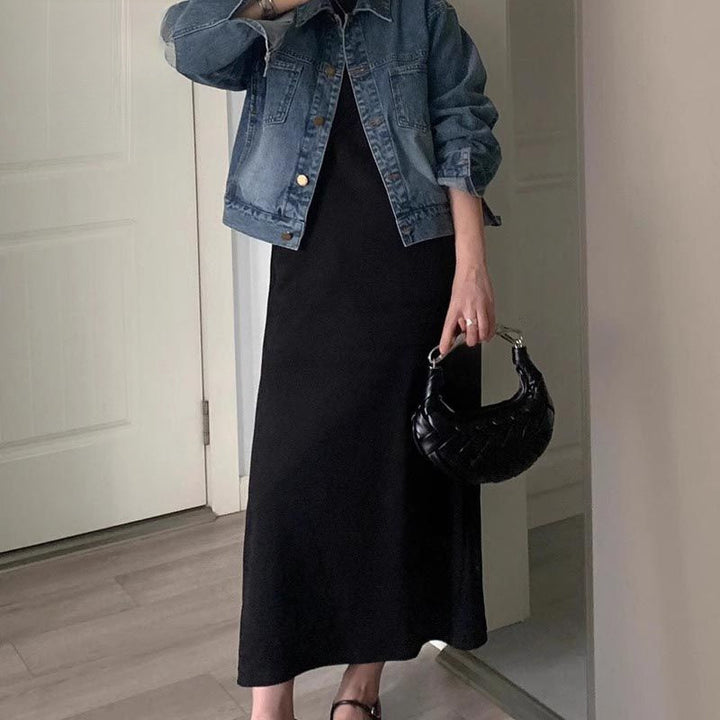 Ein raffiniertes marineblaues Samtkleid in Midi-Länge mit einem drapierten Paillettenoberteil und einem maßgeschneiderten Reverskragen. Mit dreiviertel Ärmeln und einer strukturierten Silhouette balanciert dieses Stück klassischen Charme mit modernem Glamour—perfekt für Cocktailabende und elegante Anlässe.