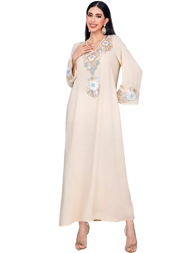 Embroidered V-neck maxi dress – LUMIÈRE – missodd.com