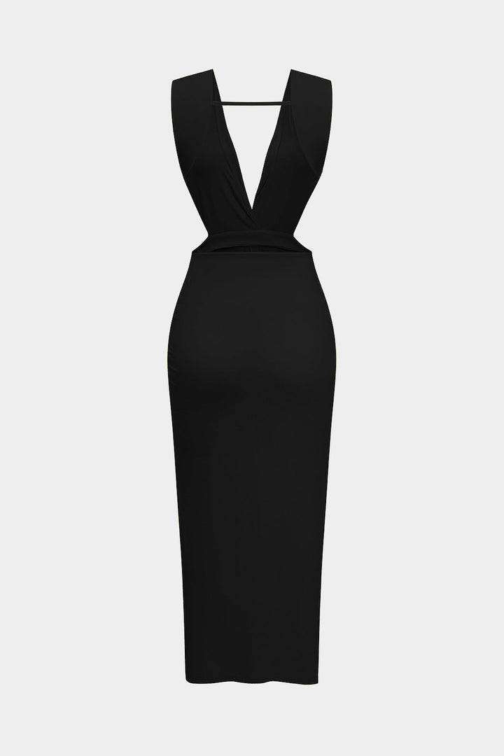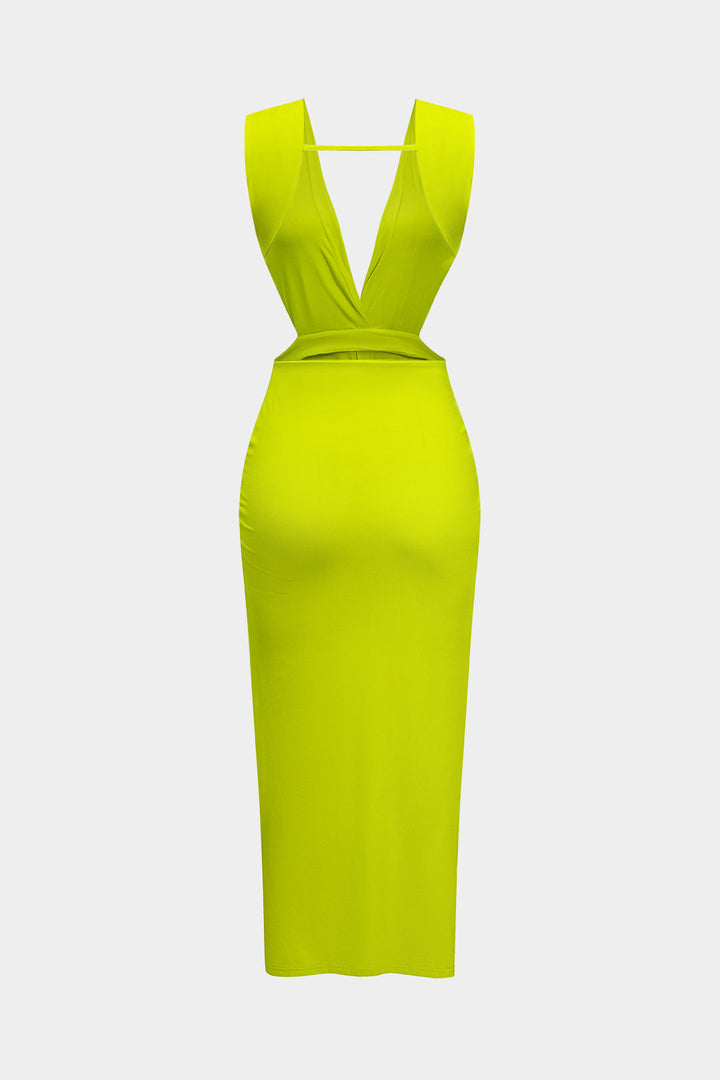Ruched Twist Knot Backless Sleeveless Midi Dress