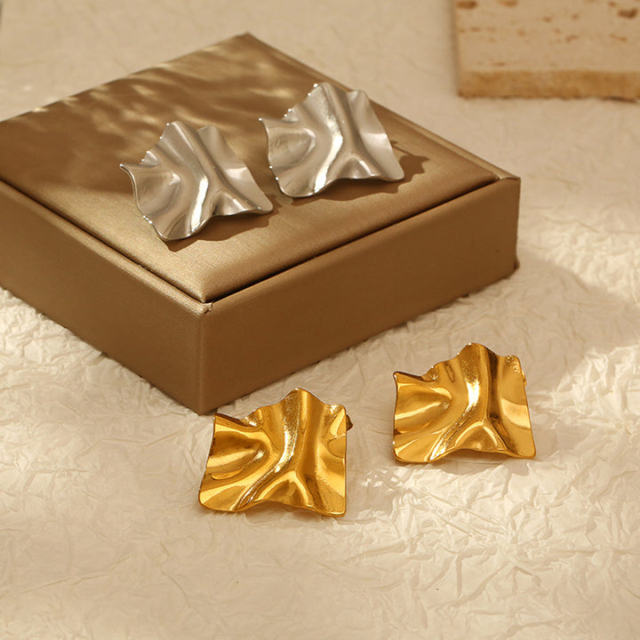 Bold and elegant, these square folded earrings feature a streamlined, sculpted design with a polished finish. Their soft curves and asymmetrical design add a touch of movement and a modern artistic flair, making them the perfect piece for both daytime and evening looks. Lightweight and easy to wear, they add a touch of sophistication to any look.