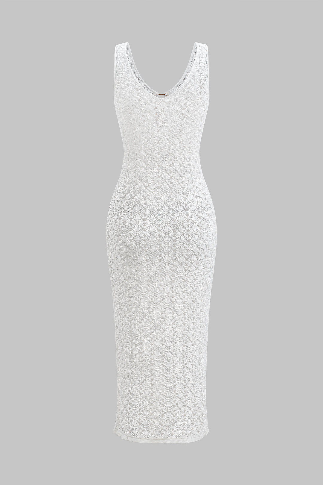 Knitted Metallic Cut Out Sheer Sleeveless Dress