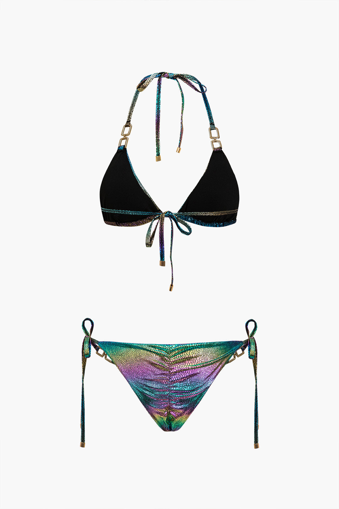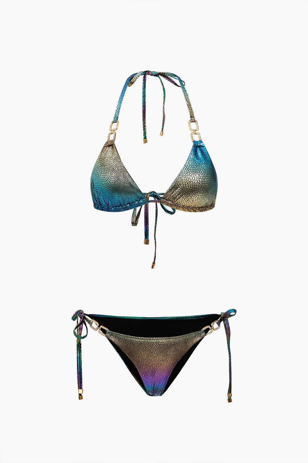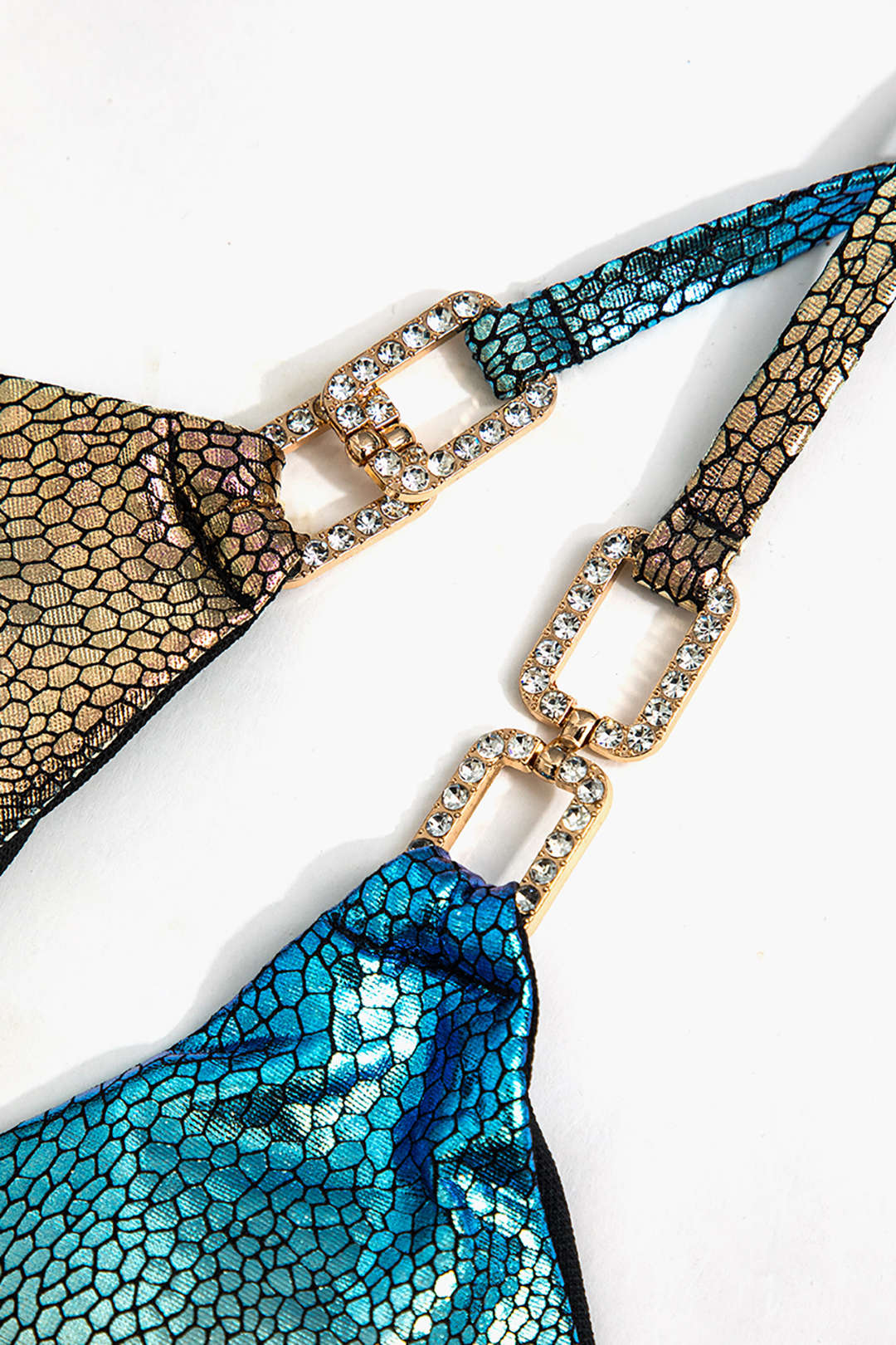 Ombre Rhinestone Tie-Up Backless Bikini Set