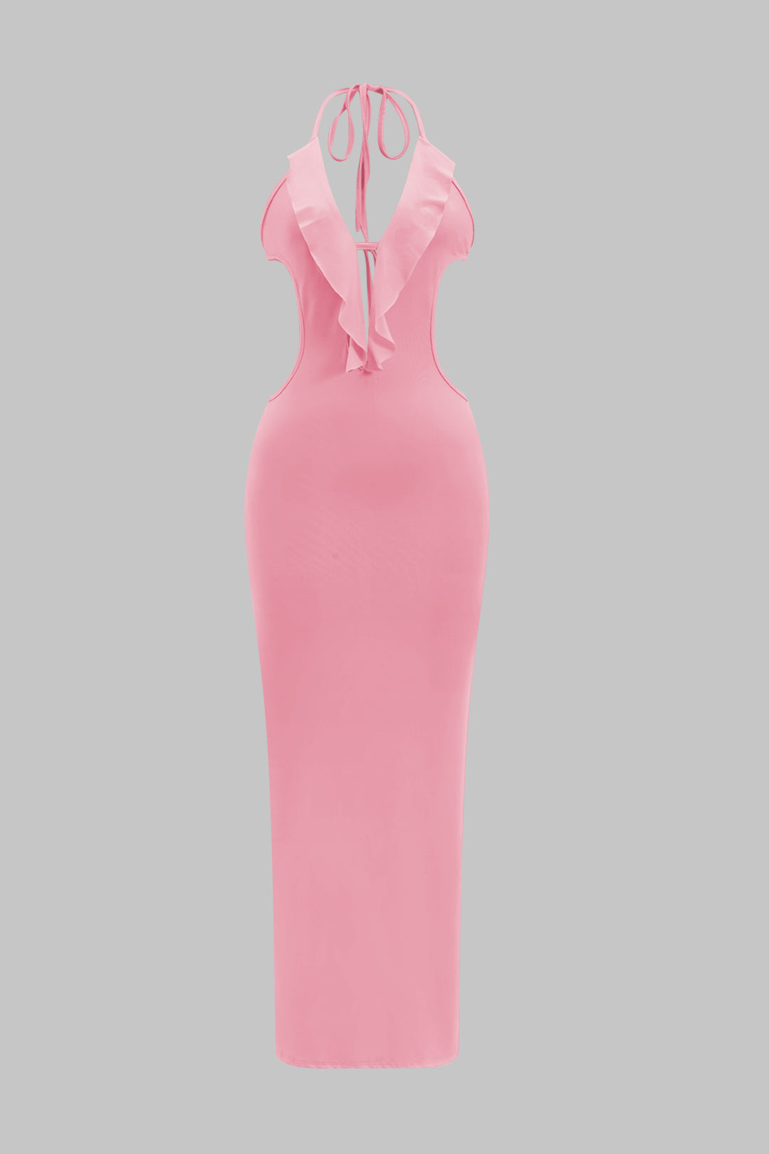 Ruffle Cut Out Tie Up Backless Maxi Dress
