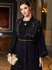 Shine elegantly in this black vertical cardigan, adorned with delicate star-inspired embroidery and vertical decorative details. Designed with long sleeves and a sleek waist, it exudes a touch of sophistication and elegance, making it perfect for a casual look.