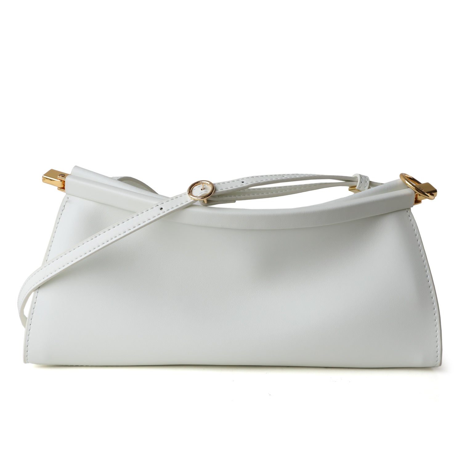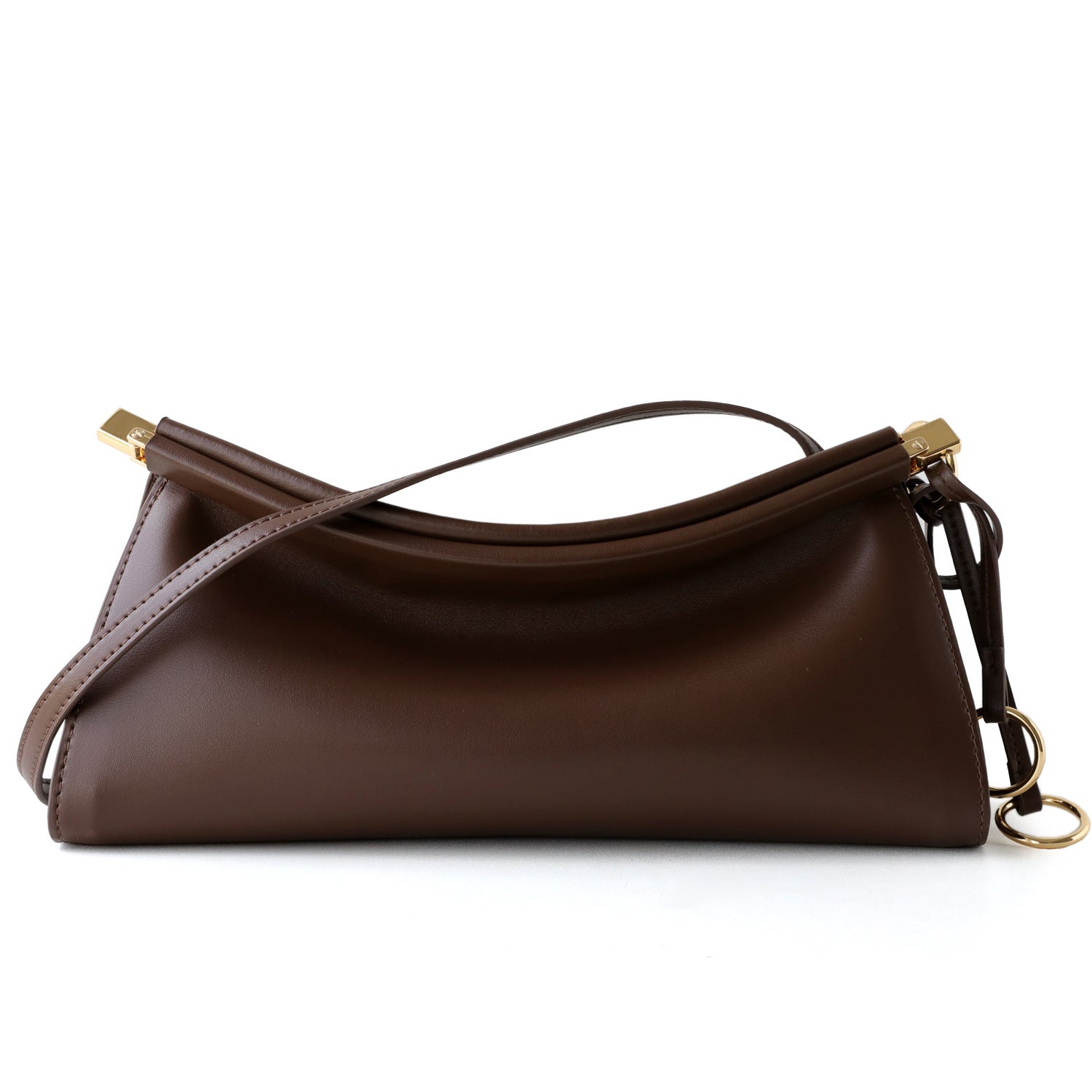 A minimalist shoulder bag crafted in smooth leather with a refined curved silhouette. Designed with a slim profile, subtle gold-tone hardware, and an adjustable strap for effortless wear. Elegant yet modern, this bag is perfect for everyday styling or elevated evening looks, adding a polished touch to any outfit.