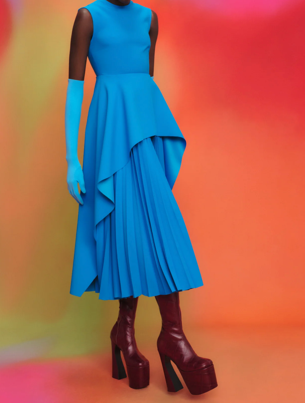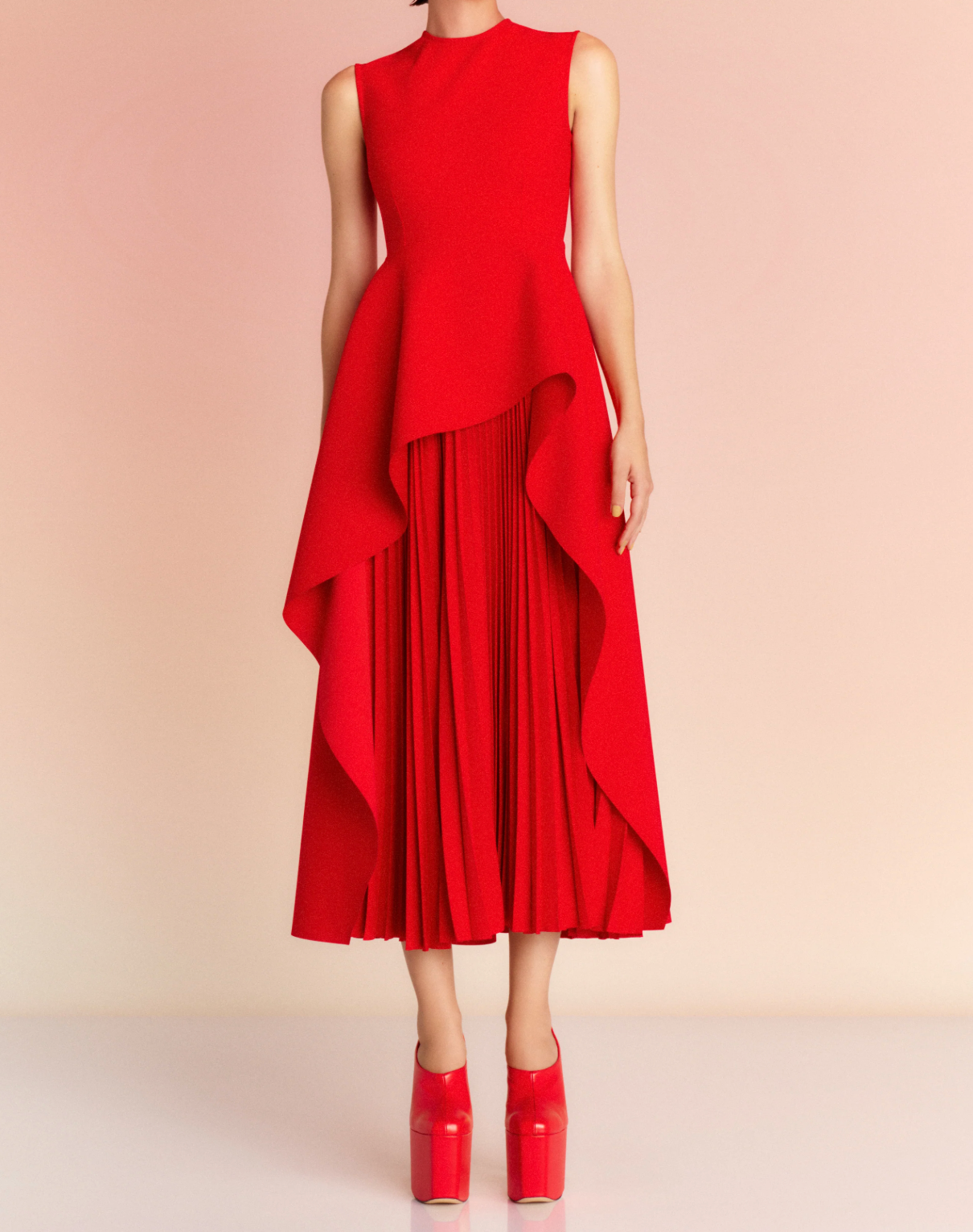 sleeveless peplum dress with layered pleated skirt – MARIGOLD