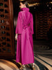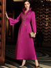 An elegant purple column dress featuring a chic embellished collar and intricate gold embroidery along the chest. Designed with long, wide sleeves and a straight cut, this dress combines elegance and sophistication.