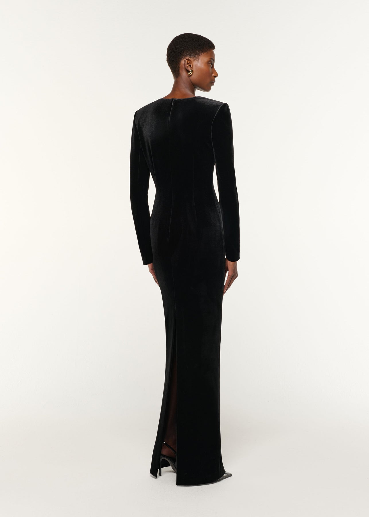 velvet midi dress with embellished asymmetric neckline – NOIRINE